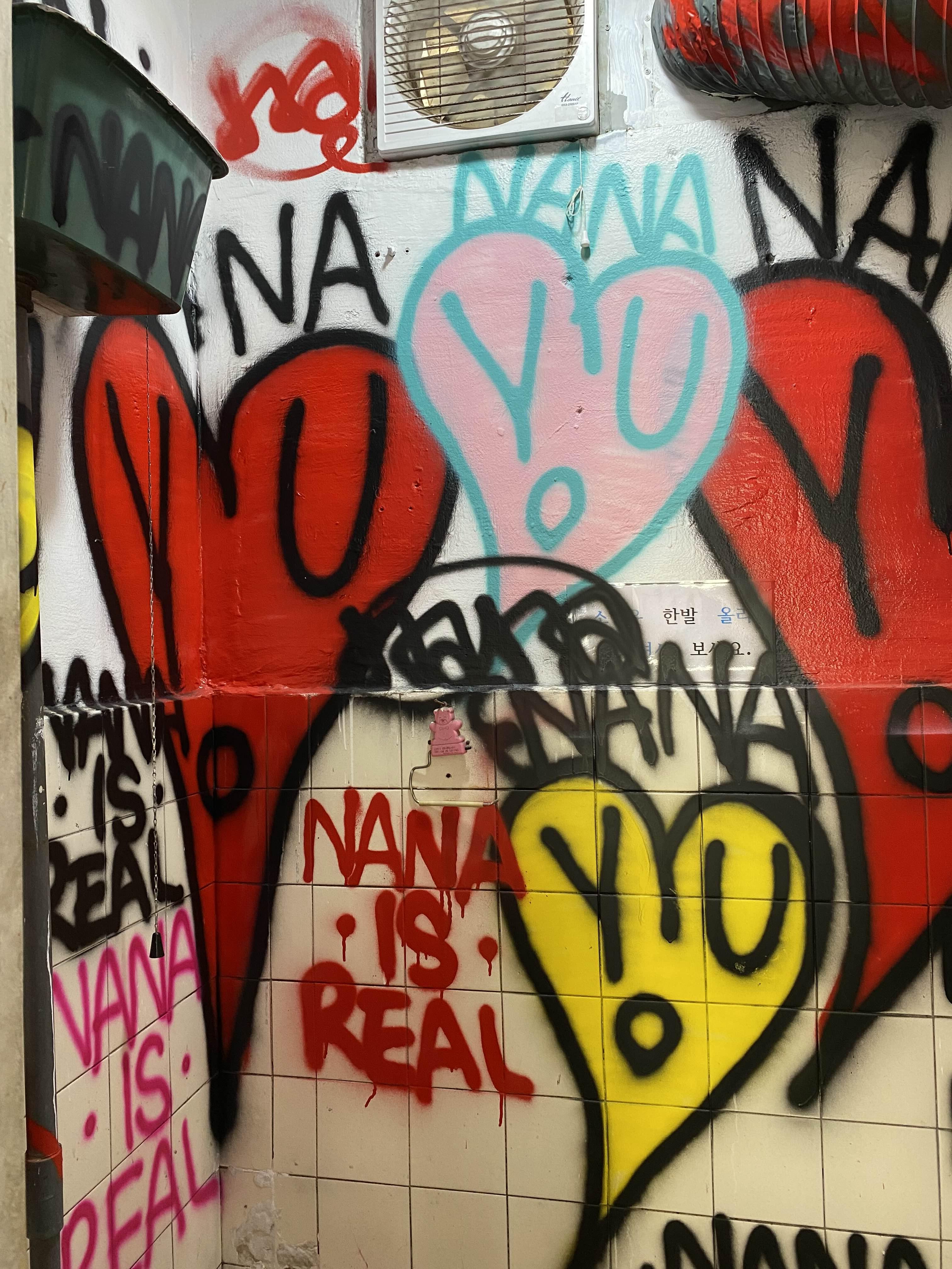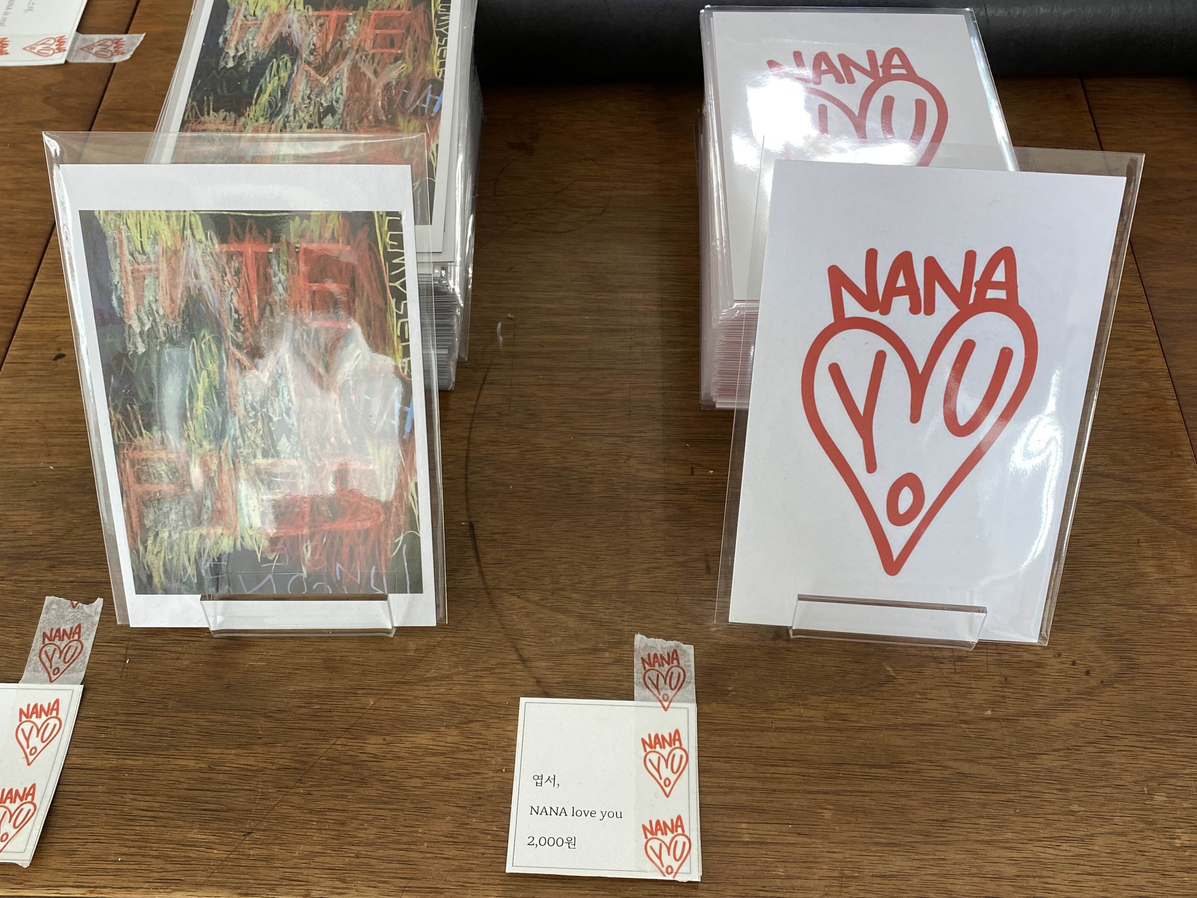홍대에서 하트 그림에 나나(NANA)라는 글자가 있는 그래피티를 본 분들 있으시죠. 이 그래피티의 작가 NANA의 첫 전시입니다. 전시는 1부 <Finding NANA>와 2부 < NANA is real>로 나눠서 개최됩니다. 1부 전시는 6월 26일까지 열립니다. 2007년부터 시작한 NANA의 미공개 작품과 최근 그래피티 작품들을 만나볼 수 있습니다. 홍대 곳곳의 그래피티를 보면서 항상 궁금했었는데요. 전시를 보고 궁금증이 조금 해소되었습니다. 스케치와 전시장 곳곳을 채운 그래피티와 함께 화장실도 놓치지 말고 확인해보세요. 인스타그램에 포스팅하면 선착순으로 포스터 또는 엽서를 받을 수 있습니다. 또 갤러리에서 엽서도 구입할 수 있습니다.