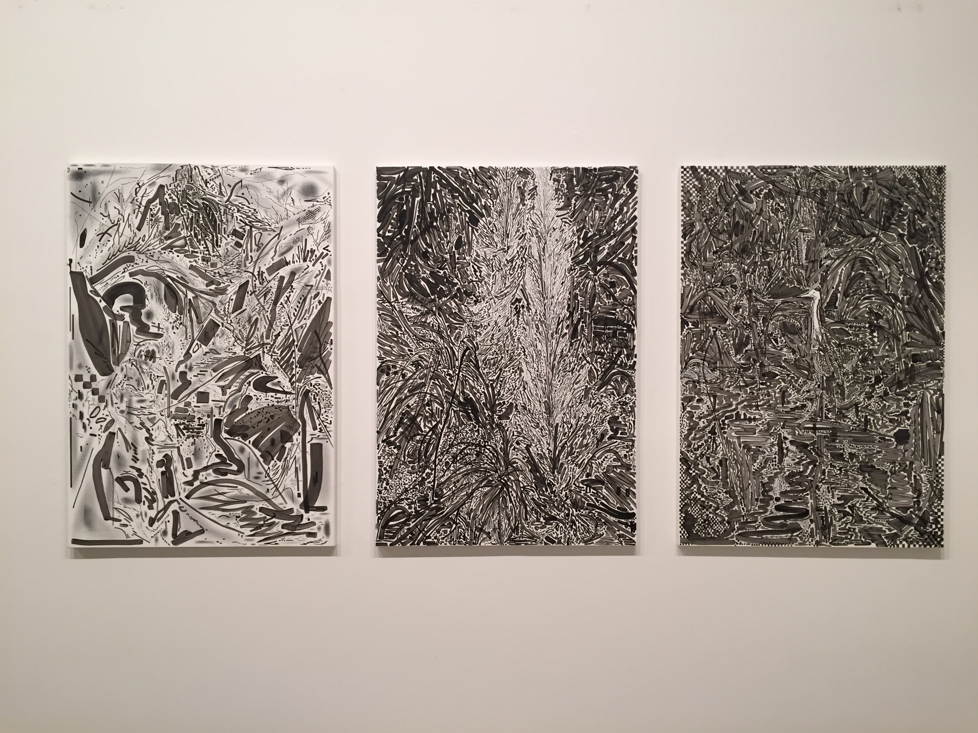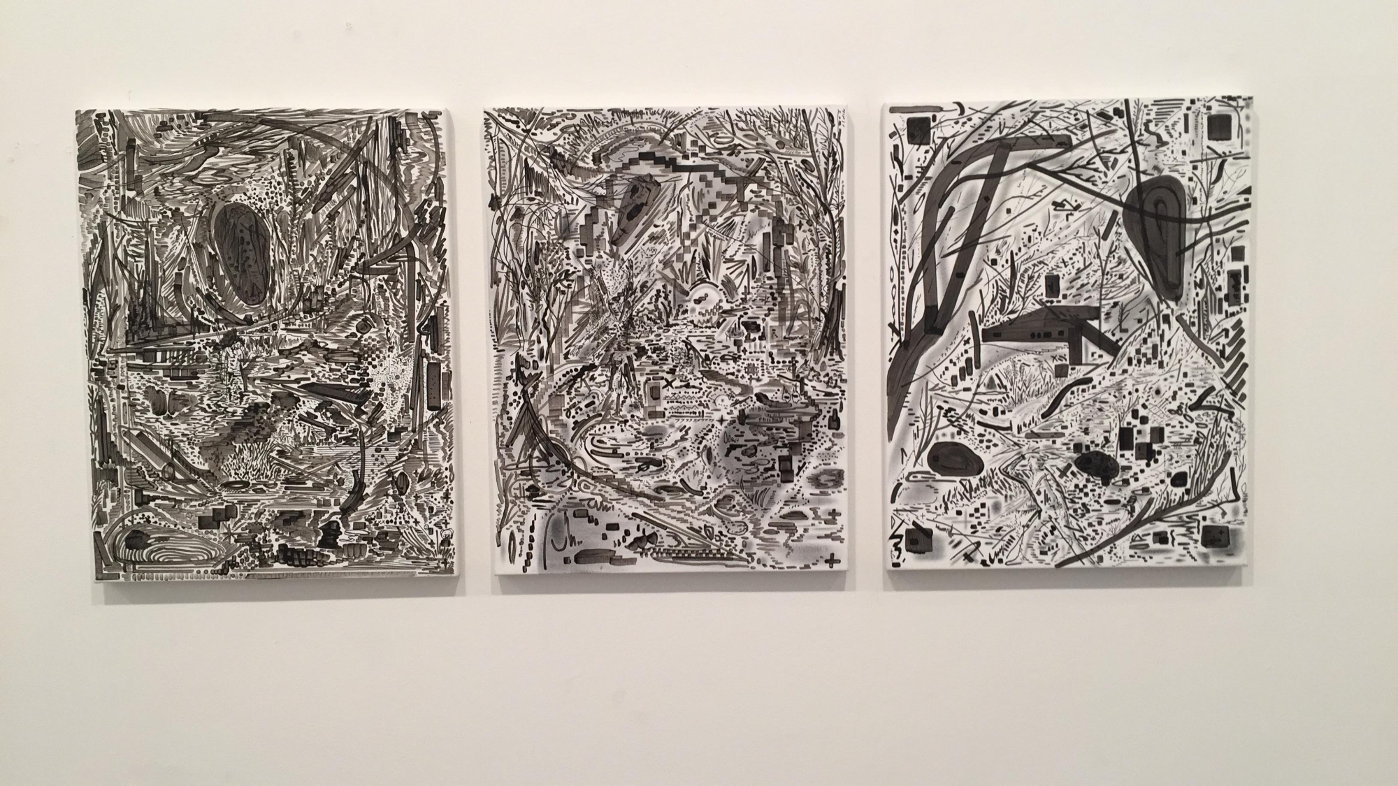 “그림을 그린다는 것”은 “어두운 숲을 헤매는 것과 비슷하다”고 고백하면서, 작가는 “힘을 다해 정확히 대상을 포획해보려 하지만 대상은 나에게 명확히 실체를 드러내지 않고 매 순간 진동하며 움직인다”고 덧붙인 바 있는데, 그의 그림이 “어두운 숲을 헤매는 것”처럼 느껴지는 건, 대상 자체가 “매 순간 진동하며 움직”이기 때문이지 그 반대가 아니다. […] 다시 말해 숲과 어두움이 선행하는 것이 아니라 나무가, 대상 자체가 숲이나 어두움과 구분 불가능한 방식으로 “진동”하며 분산되는 것이다. 명확하게 주어진 ‘숲의 선’이 아니라, 안정적인 선으로 머무르거나 남지 않고 “계속해서 자신의 역할을 바꿔가며 진동하는” ‘선의 숲’, 아니 ‘숲으로서의 선’이 문제인 것이다. 그에게 형상은 이미 언제나 시간 속에, 그 과정에서 수반되는 파멸 혹은 변형의 가능성 속에 있다. 이러한 ‘모호함’은 그의 드로잉들이 포착하는 시간성이 일직선적이거나 연대기적이지만은 않다는 것, 혹은 특정한 순간에 ‘유예’된 것이라는 것을 뜻한다.
