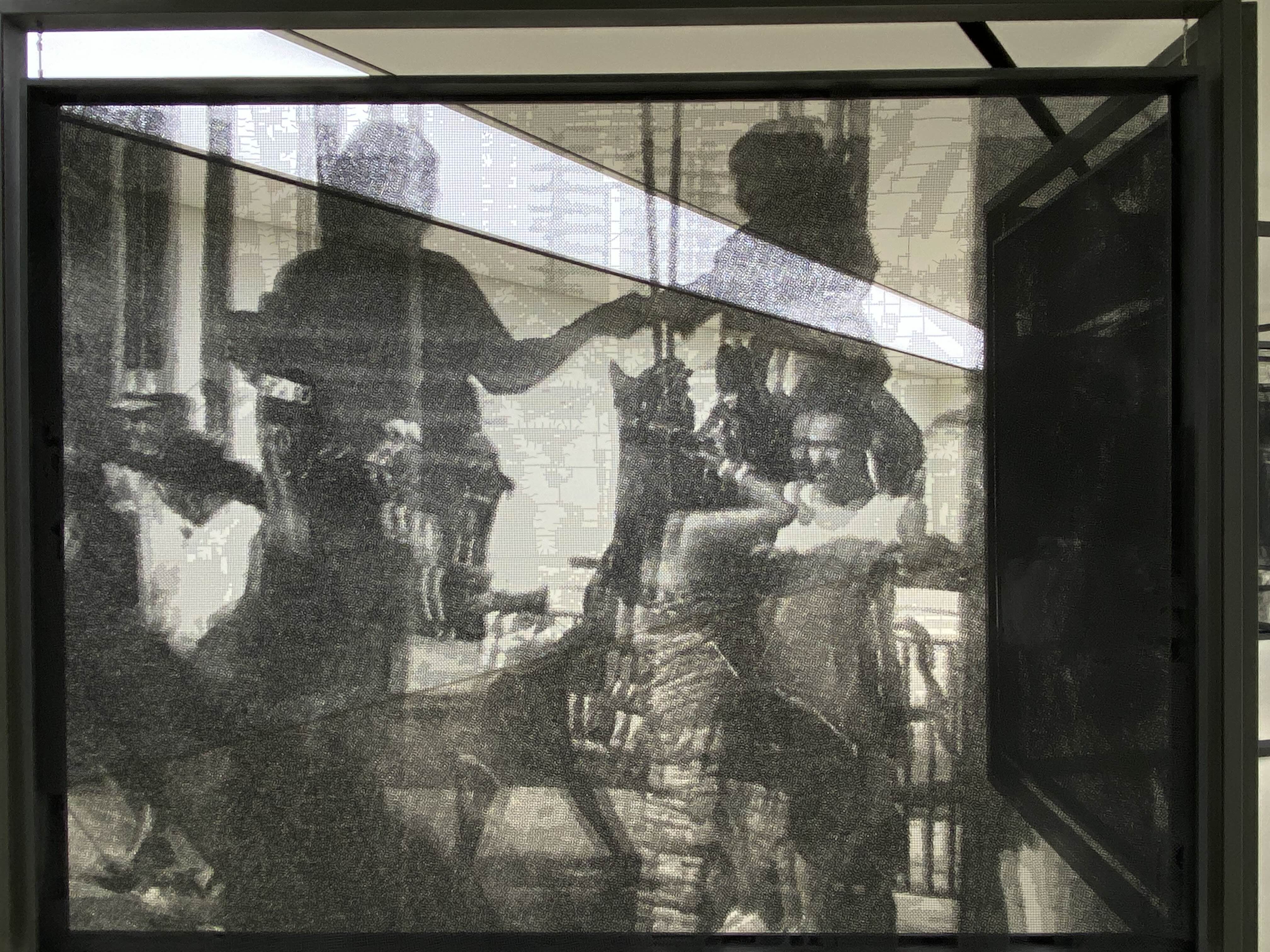 한편, 개별 Window 시리즈는 높다란 사각 철제 프레임에 연결되어 마치 공간 속의 공간으로 관객을 초대하는 것만 같은 낯선 미장센을 연출한다. 철망 조각을 에워싸고 있는 두터운 검은 테두리는 중앙에 초점을 맞춰 사물을 응시하는 우리의 시야를 방해하며 긴장감을 유발한다. 그리고 이 프레임들은 경첩으로 연결됨에 따라 전시장을 거대한 병풍처럼 가로지르게 되는데, 이 때 관객은 작품의 커다란 부피와 조각이 갖는 환조성으로 인해 작품 내부로 직접 침범하게 된다. Window 시리즈는 프레임이라는 전통적이고 고정적인 장치가 결합되었음에도, 오히려 그 틀의 압도적 크기와 전위적 디스플레이를 통해 작품을 감상하는 주체로 하여금 신체를 적극적으로 움직이게 하며 세계와 나의 상호관계를 재고하게 만든다.