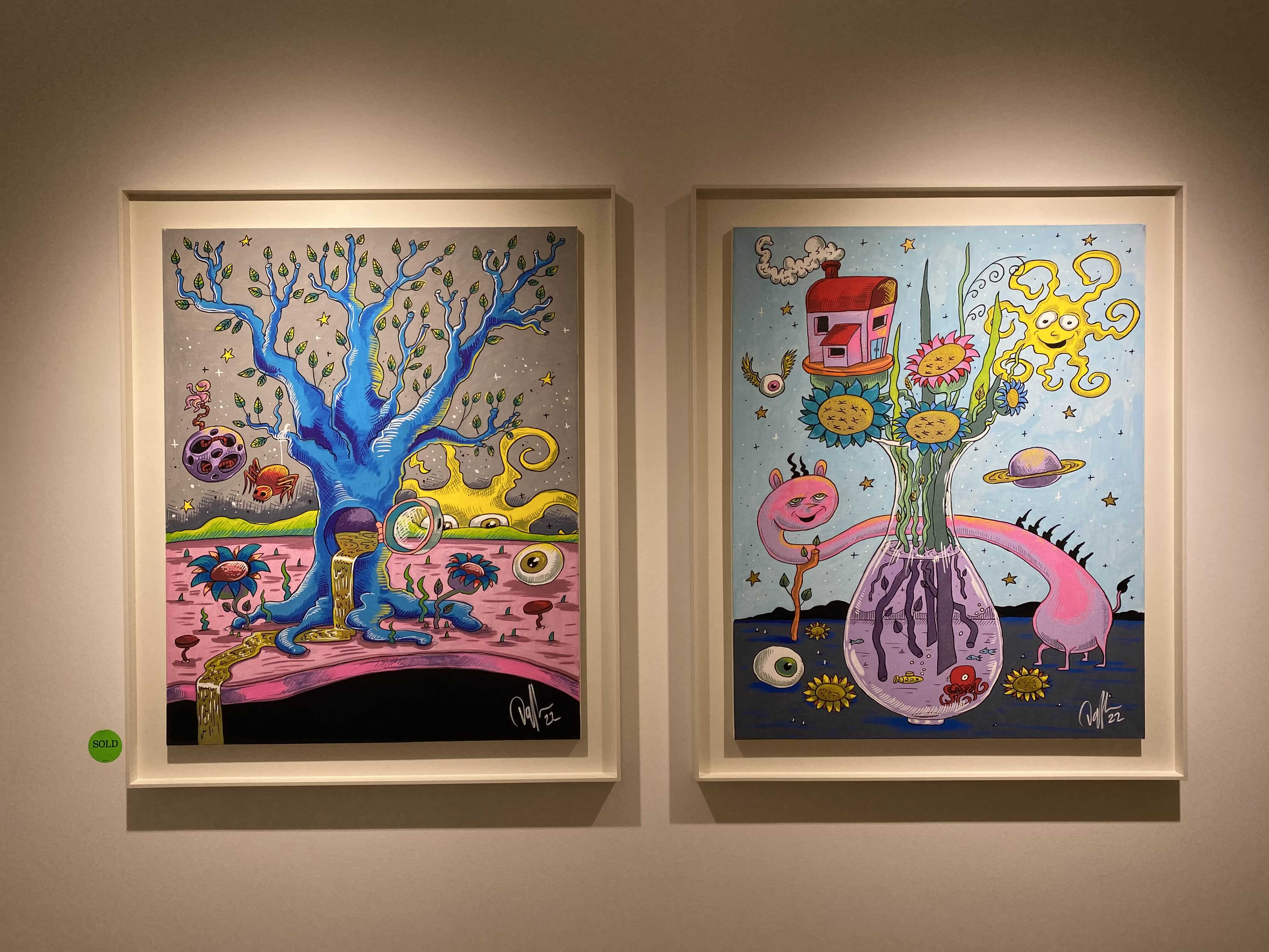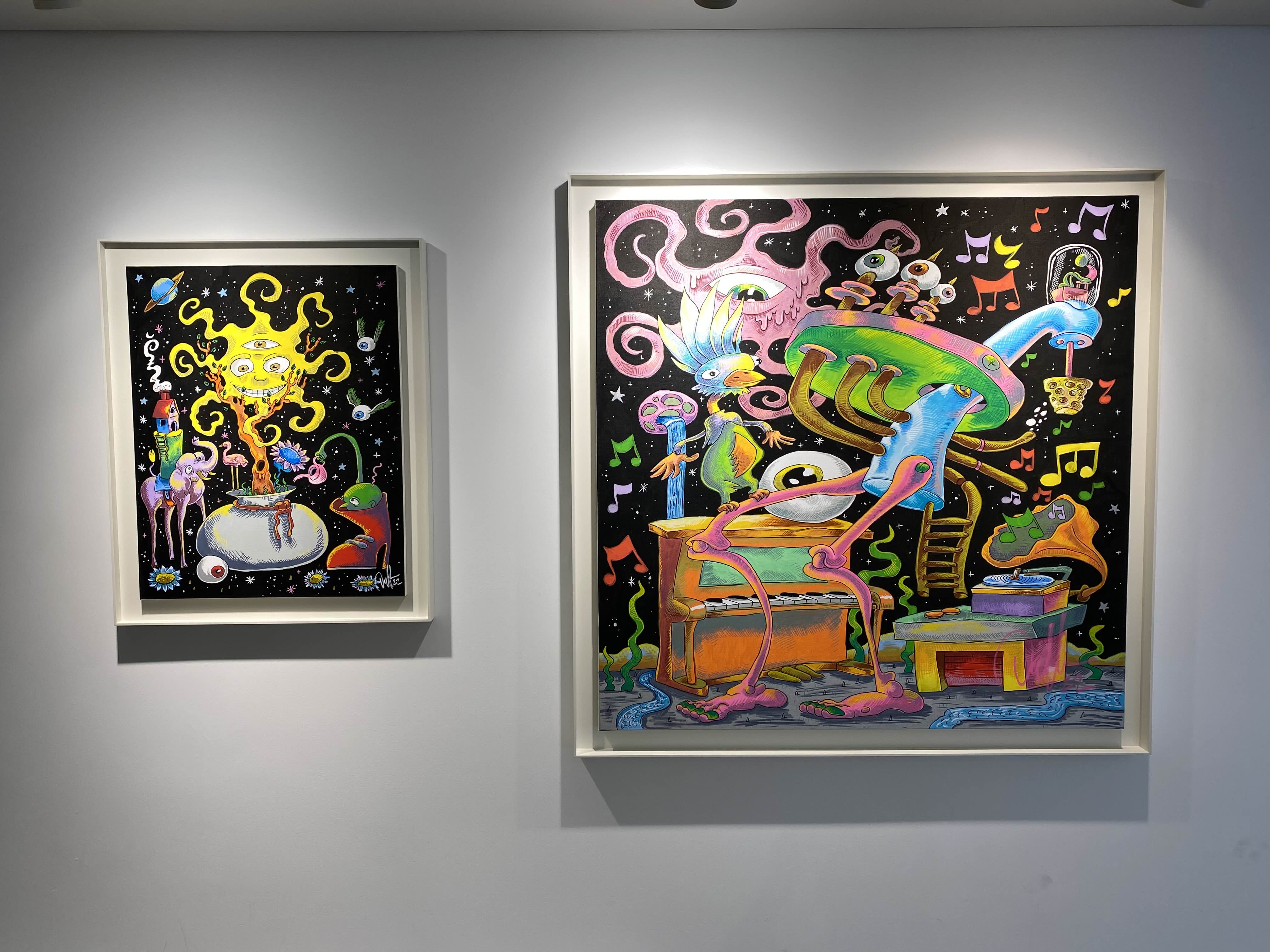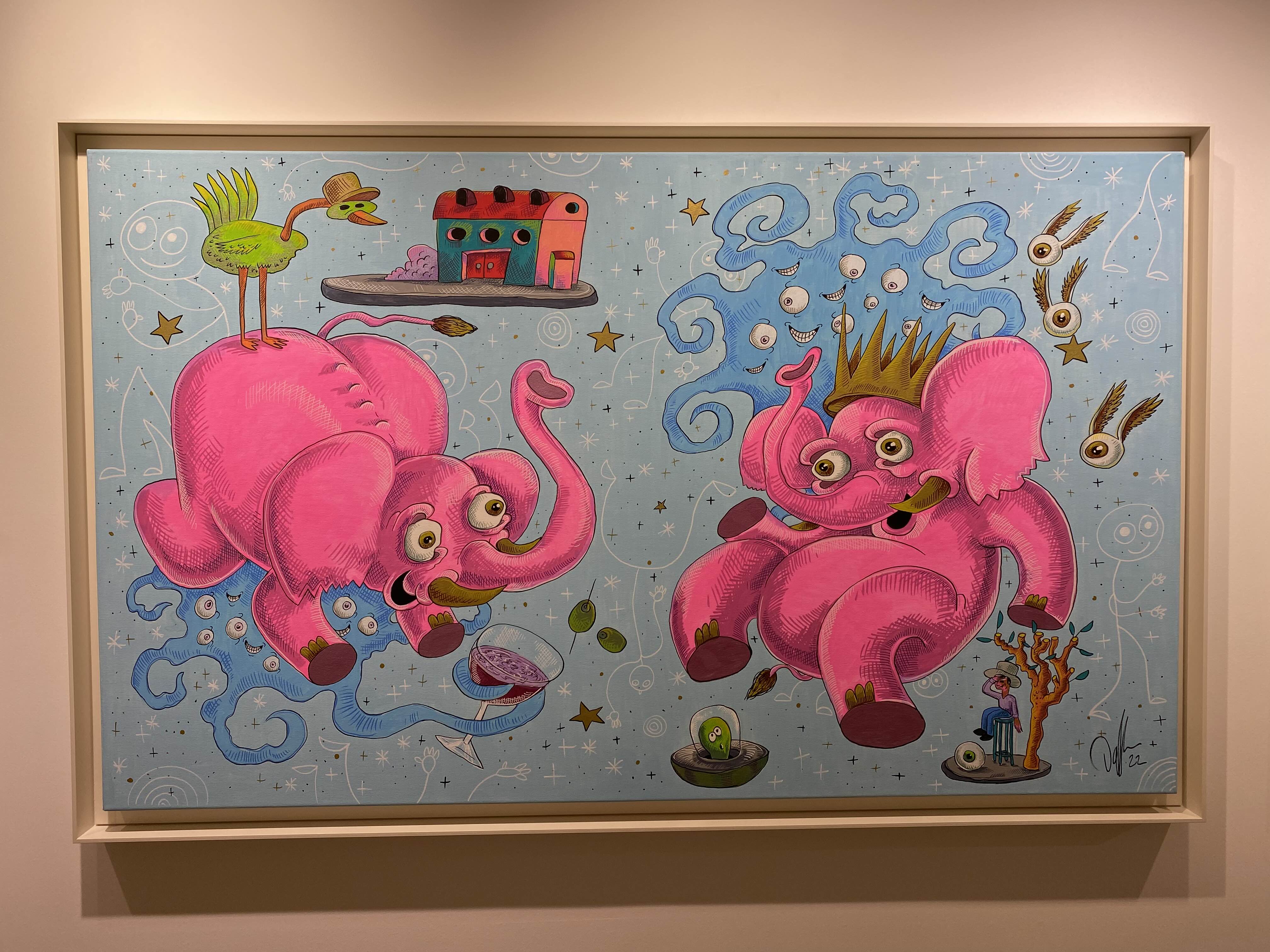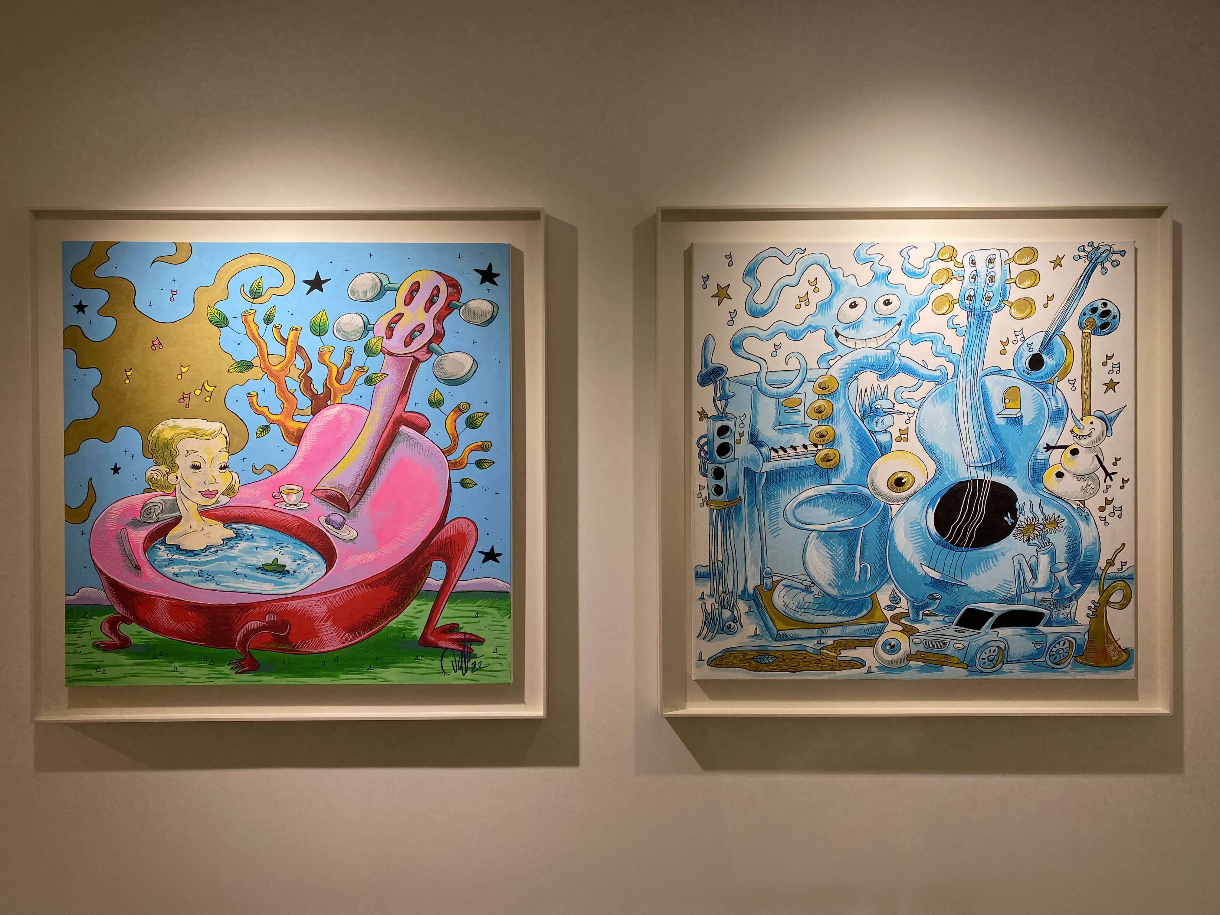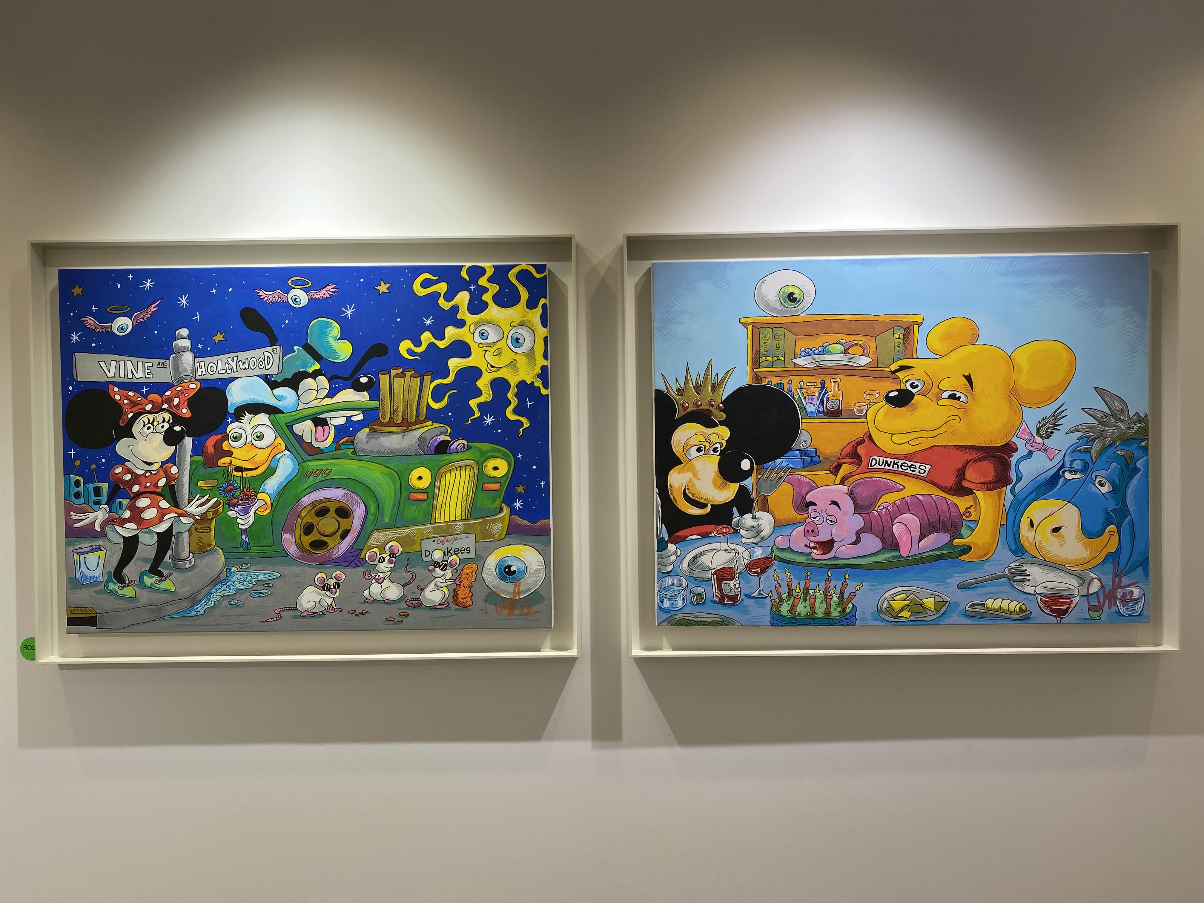 헬렌앤제이 갤러리 서울은 팔판동에 새롭게 개관한 갤러리입니다. 개관전으로 대니얼 밀리토니언의 전시가 진행됩니다. 대니얼 밀리토니언은 LA에서 활동하고 있는 예술가입니다. 미키마우스, 곰돌이 푸우, 미니마우스 등 익숙한 캐릭터들이 밝은 컬러들과 함께 위트 있는 모습을 확인할 수 있습니다. 대니얼의 그림은 살바도르 달리의 영향을 받았는데요. 영향을 받은 요소들을 그림 곳곳에 발견할 수 있었습니다. 키치하고 팝적인 에너지 넘치는 작품들을 감상해보세요.