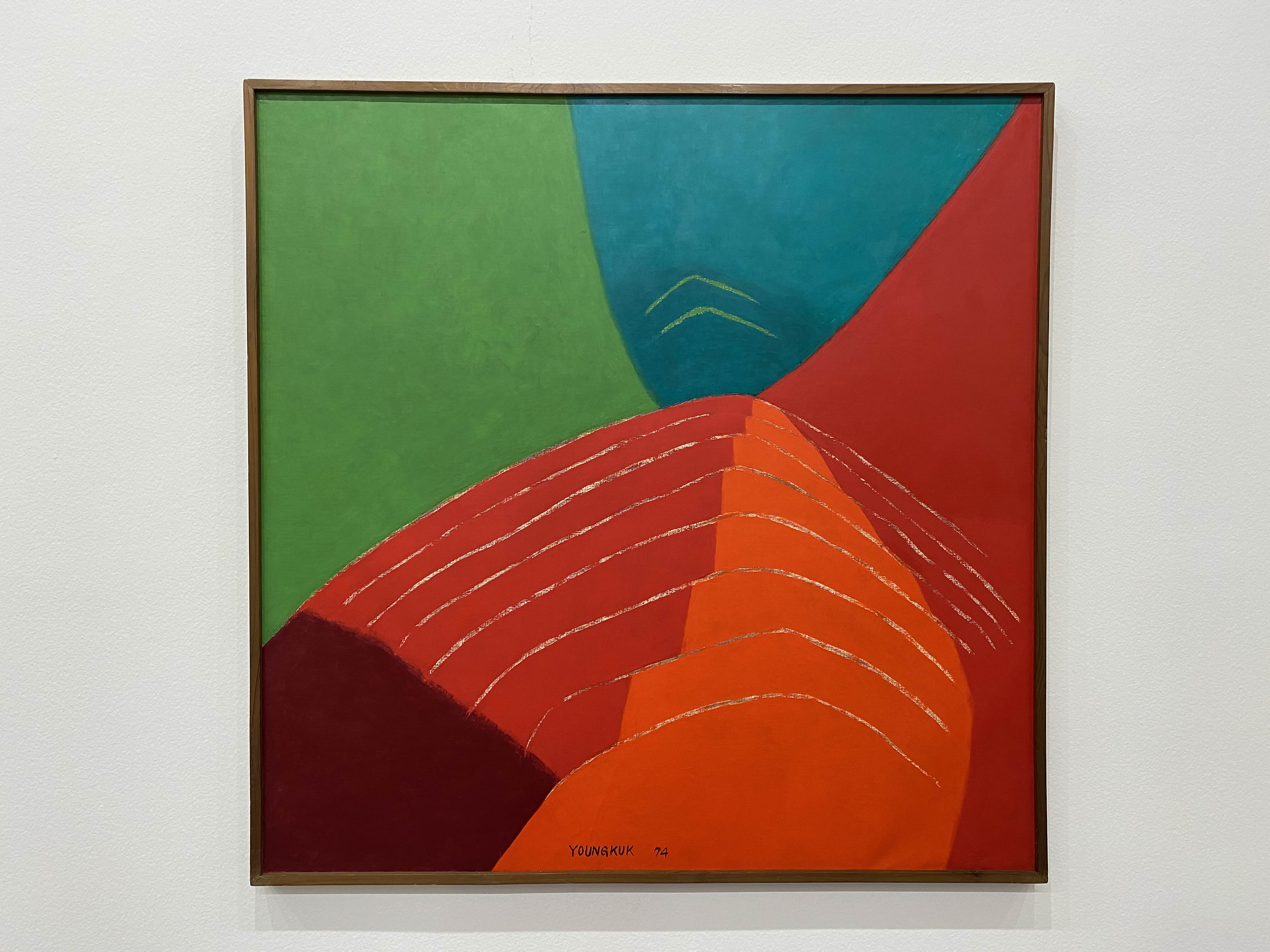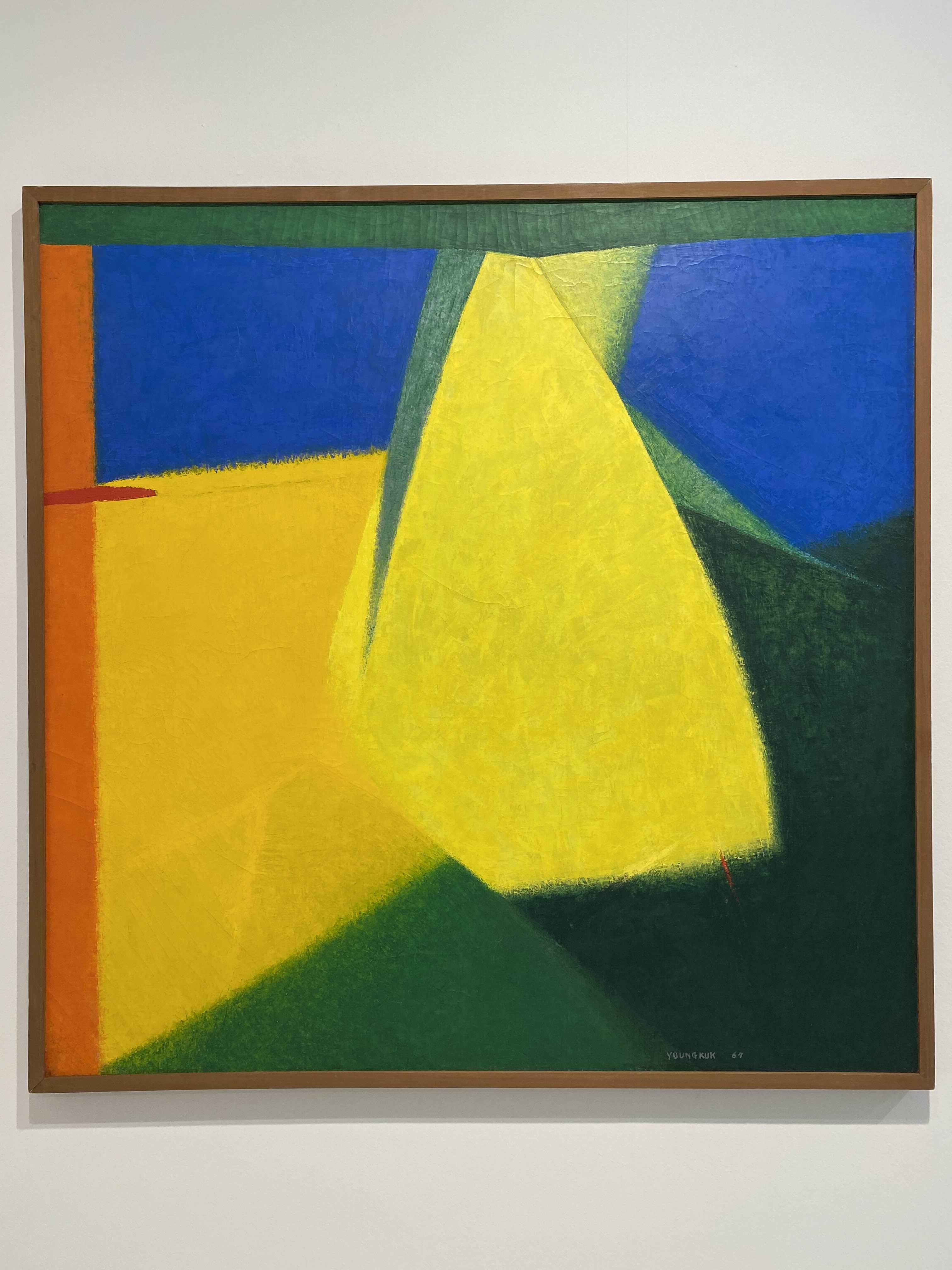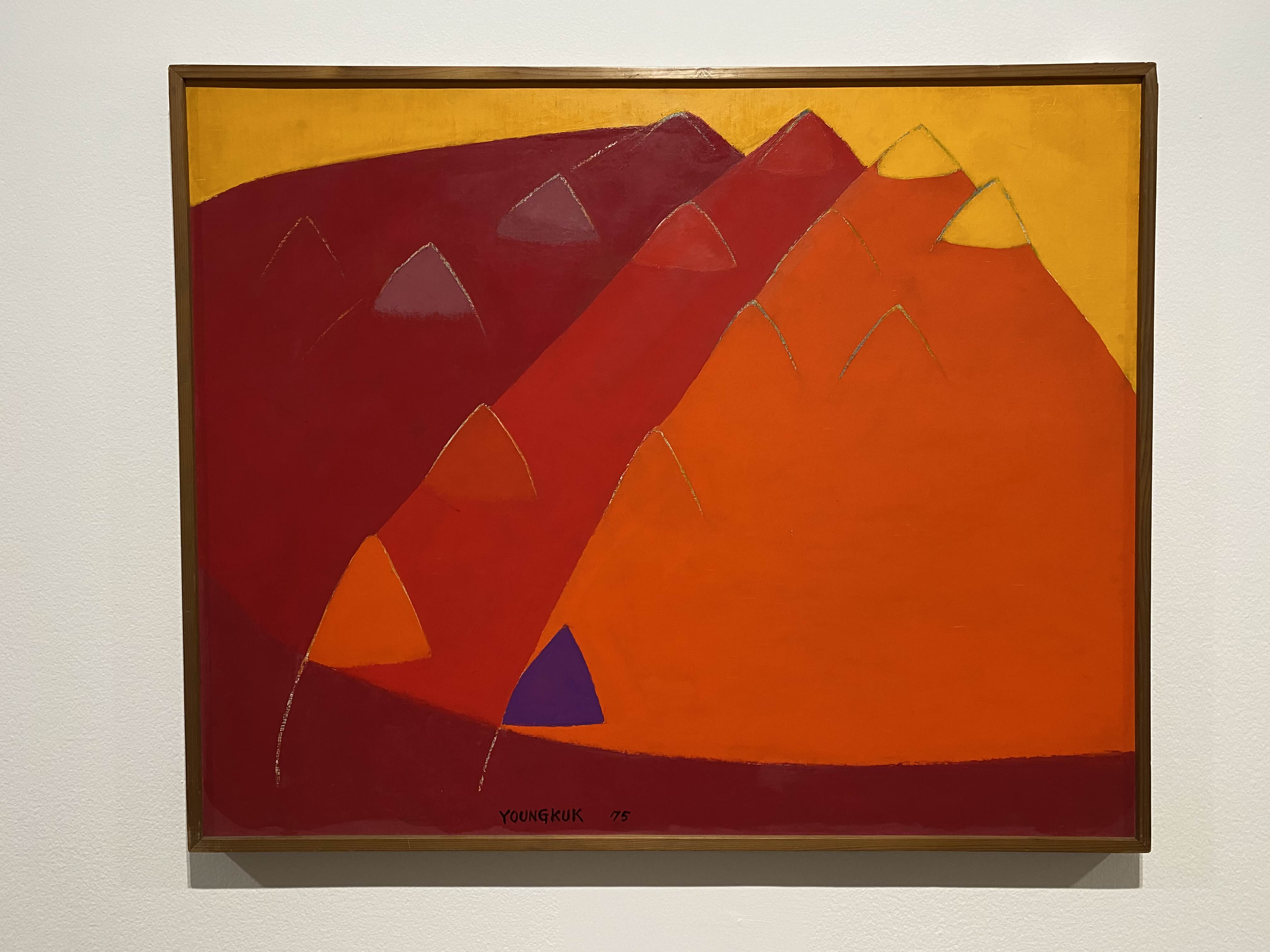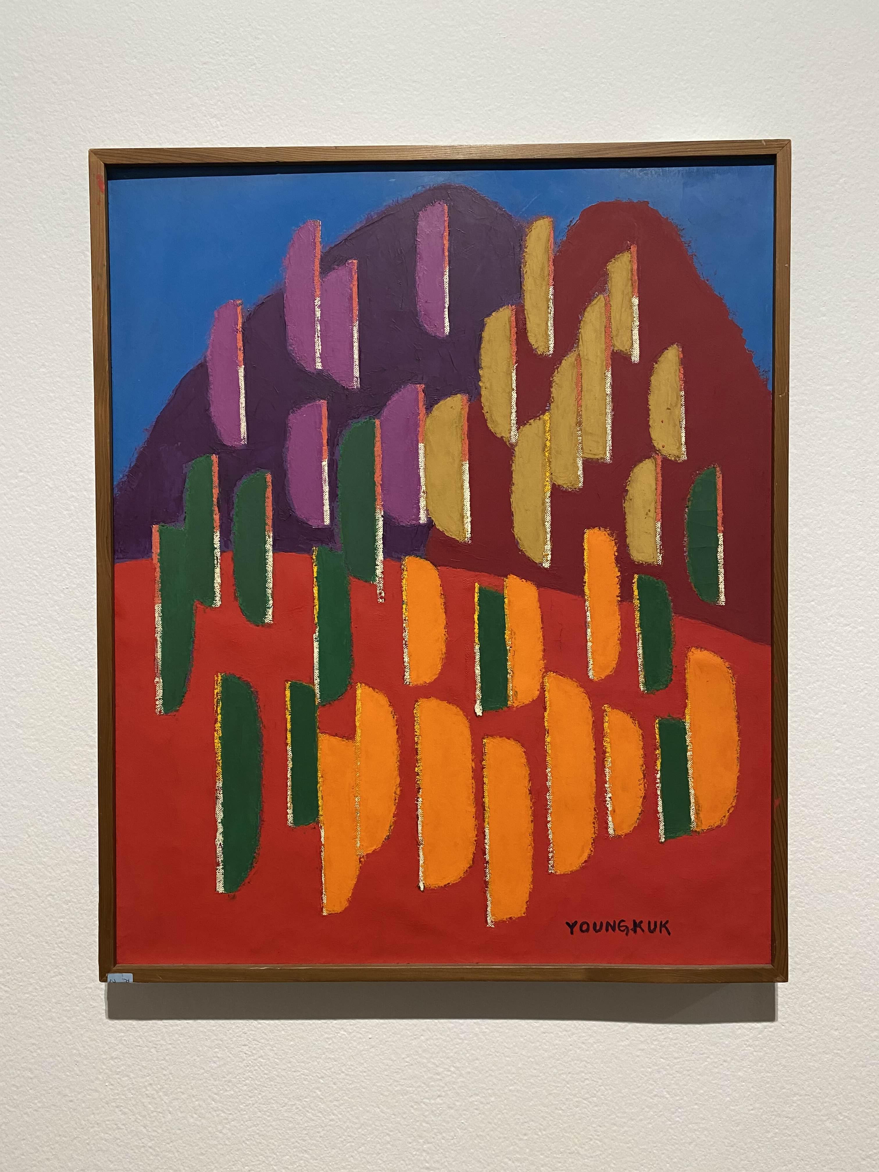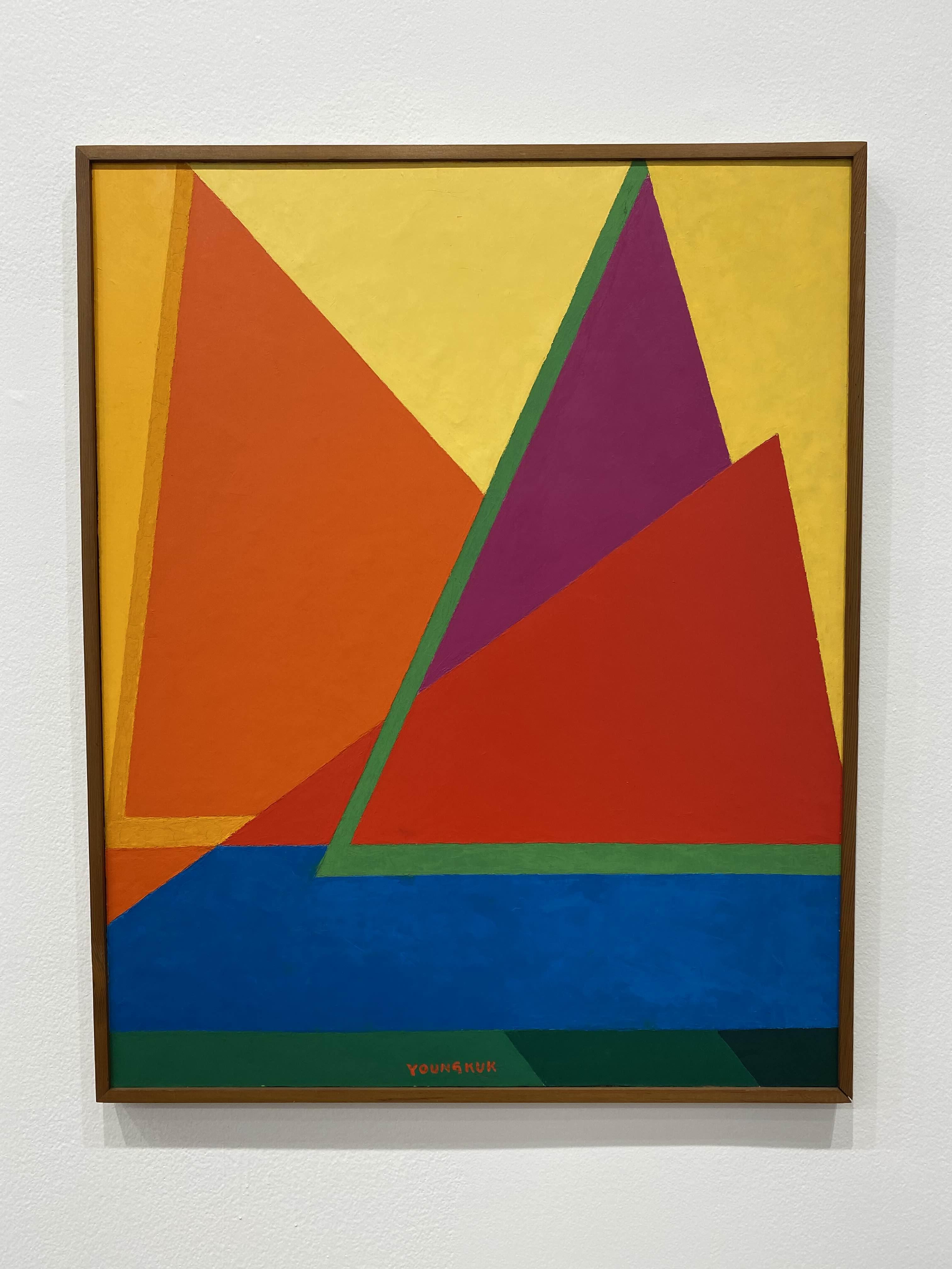 이번 전시 《Colors of Yoo Youngkuk》은 산과 자연을 모티브로 강렬한 원색과 기하학적 구도로 절제된 조형 미학의 정수를 보여주는 유영국 작품의 예술사적 의미를 조망하는 자리다. K1에서는 작가의 대표작 및 초기작을 중심으로 유영국 세계관의 쇼케이스를 보여준다. 그중 창을 통해 삼청동 풍경을 면한 앞쪽 전시장은 유영국의 색채 실험과 조형언어를 간결하게 파악할 수 있는 대표작들로 꾸려진다. 안쪽에 위치한 전시장은 고유의 색채와 추상 구도를 통해 독자적 미학과 스타일을 구축하기 시작한 50년대 및 60년대 초중반 작품을 중심으로 구성되는데, 이 공간에서는 특히 자연의 요소를 추상적 형태로 변환해 더욱 단순화된 형태와 유화의 재질감(마티에르)을 살린 작품들을 만날 수 있다.