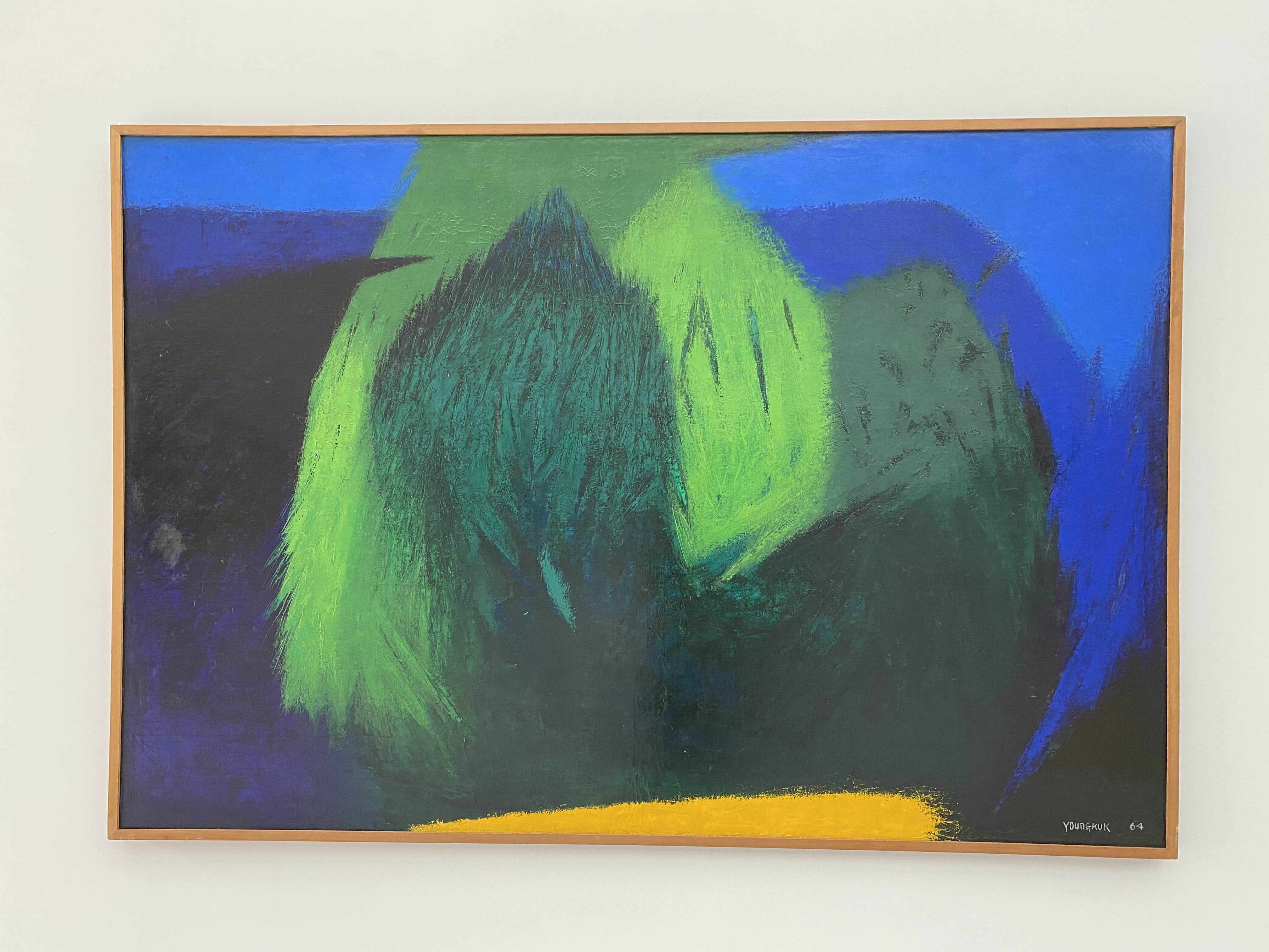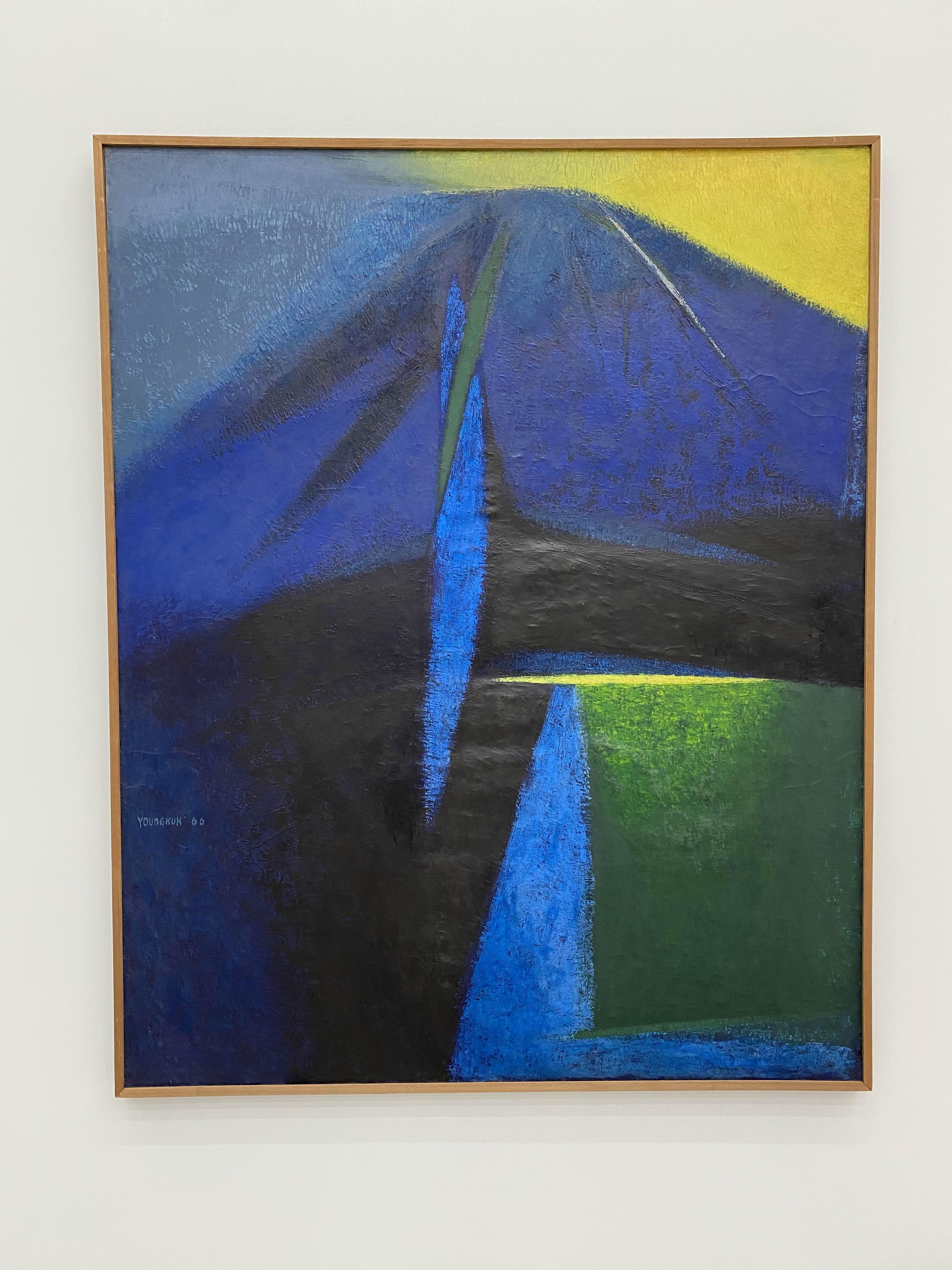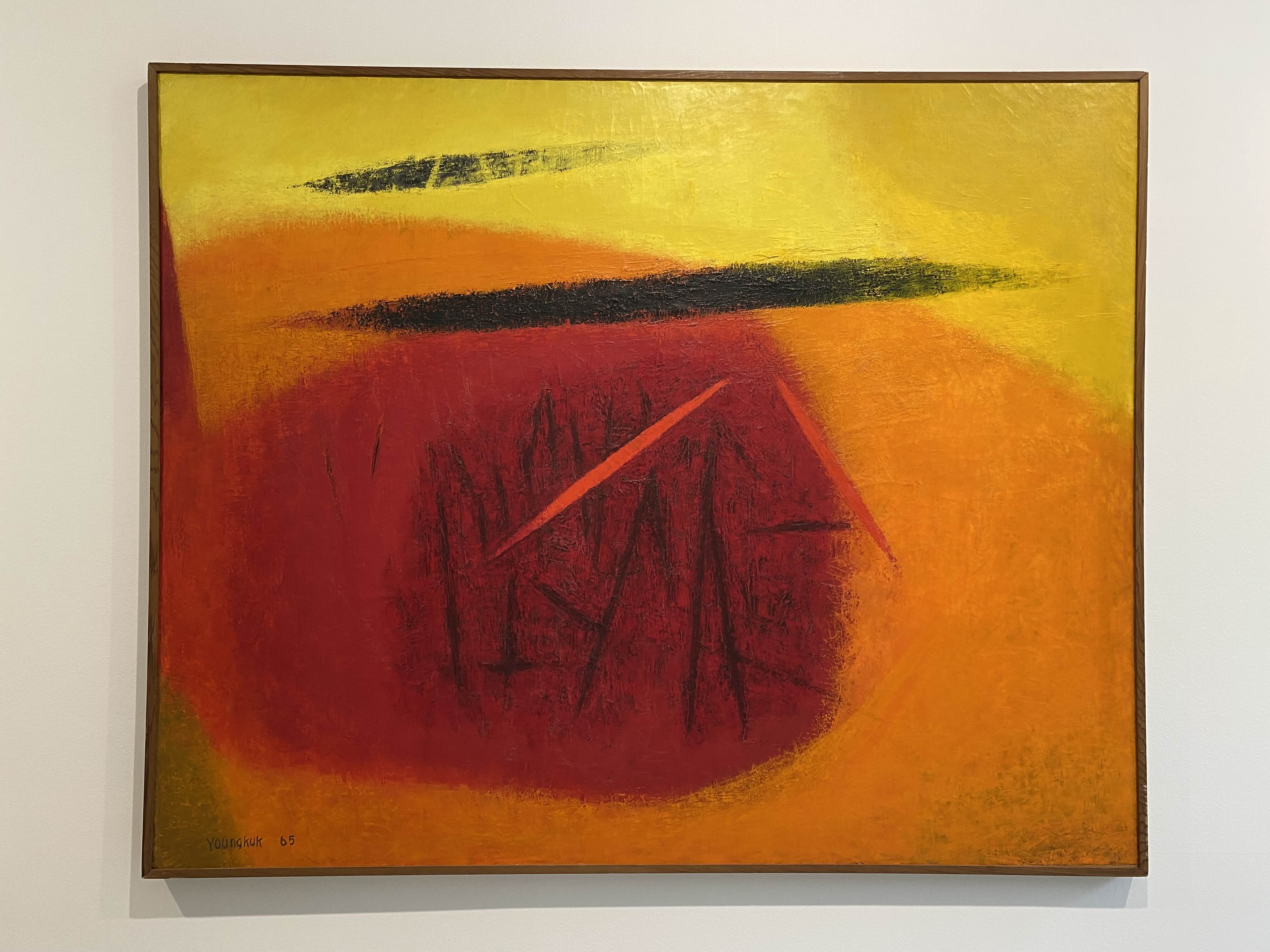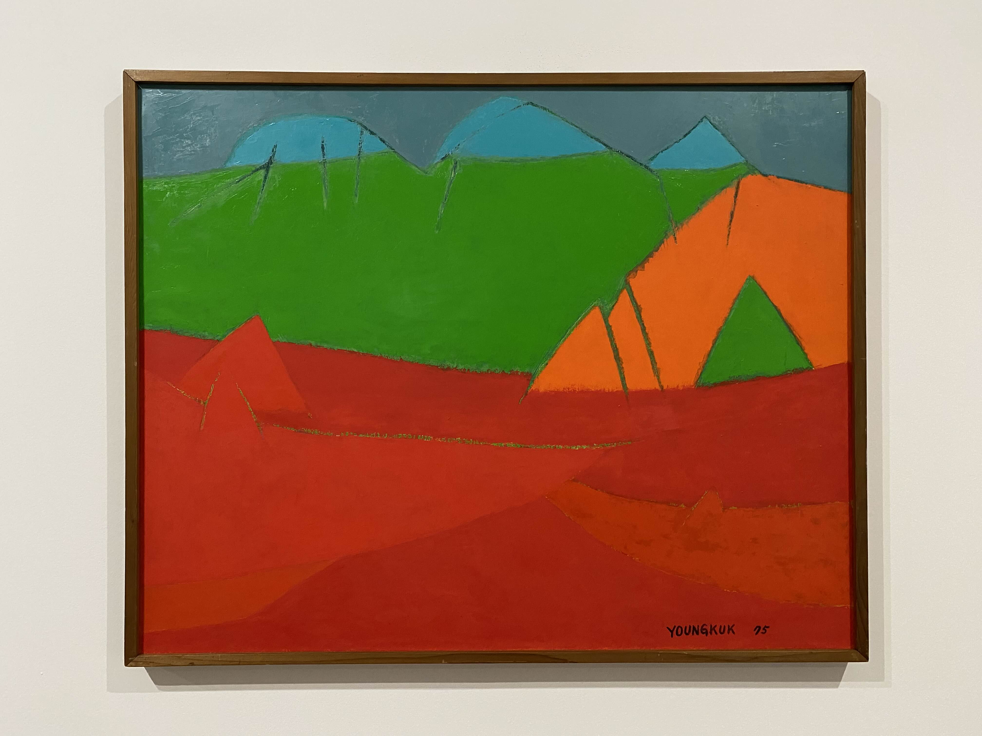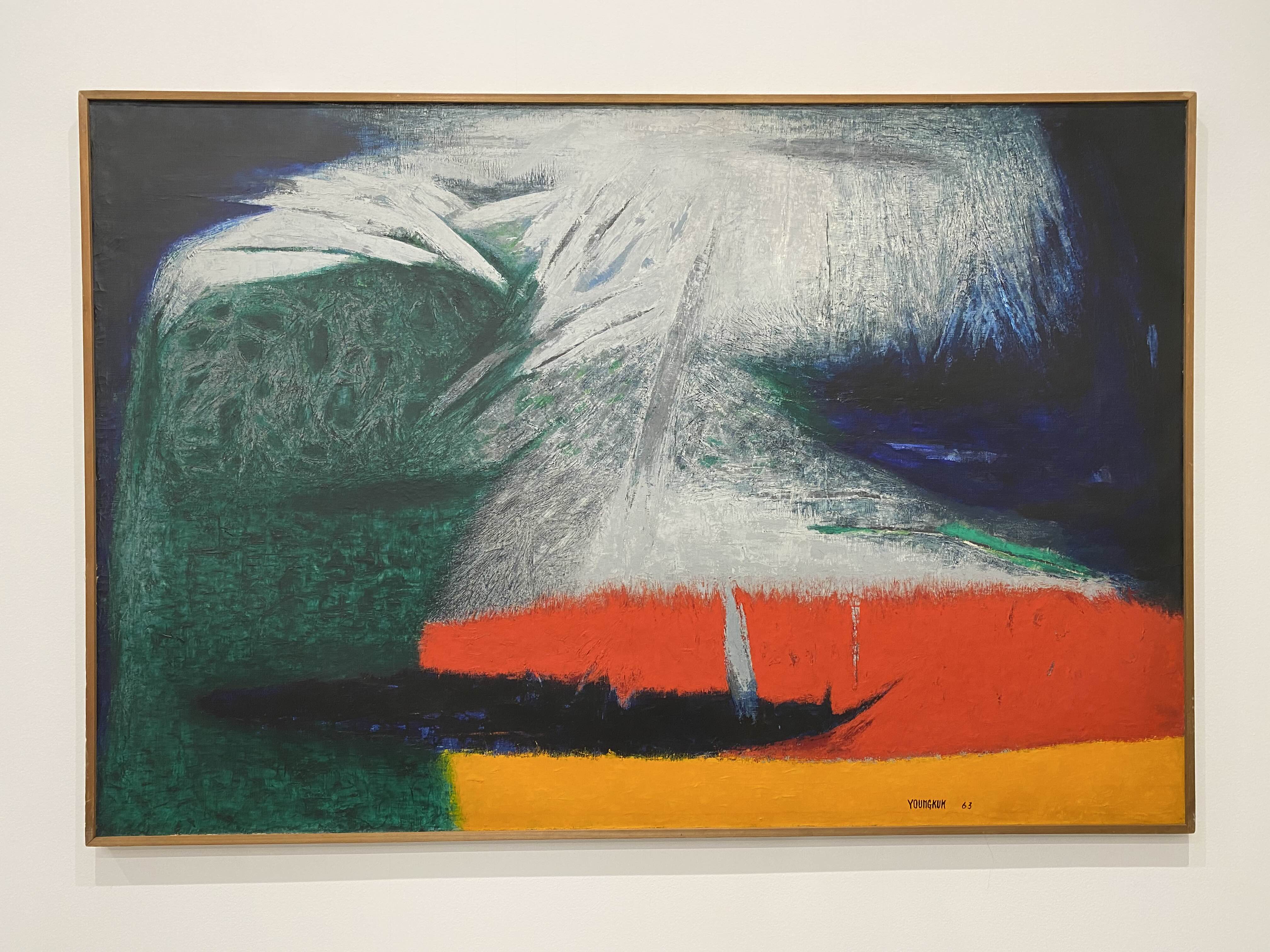 이번 전시 《Colors of Yoo Youngkuk》은 산과 자연을 모티브로 강렬한 원색과 기하학적 구도로 절제된 조형 미학의 정수를 보여주는 유영국 작품의 예술사적 의미를 조망하는 자리다. K1에서는 작가의 대표작 및 초기작을 중심으로 유영국 세계관의 쇼케이스를 보여준다. 그중 창을 통해 삼청동 풍경을 면한 앞쪽 전시장은 유영국의 색채 실험과 조형언어를 간결하게 파악할 수 있는 대표작들로 꾸려진다. 안쪽에 위치한 전시장은 고유의 색채와 추상 구도를 통해 독자적 미학과 스타일을 구축하기 시작한 50년대 및 60년대 초중반 작품을 중심으로 구성되는데, 이 공간에서는 특히 자연의 요소를 추상적 형태로 변환해 더욱 단순화된 형태와 유화의 재질감(마티에르)을 살린 작품들을 만날 수 있다.