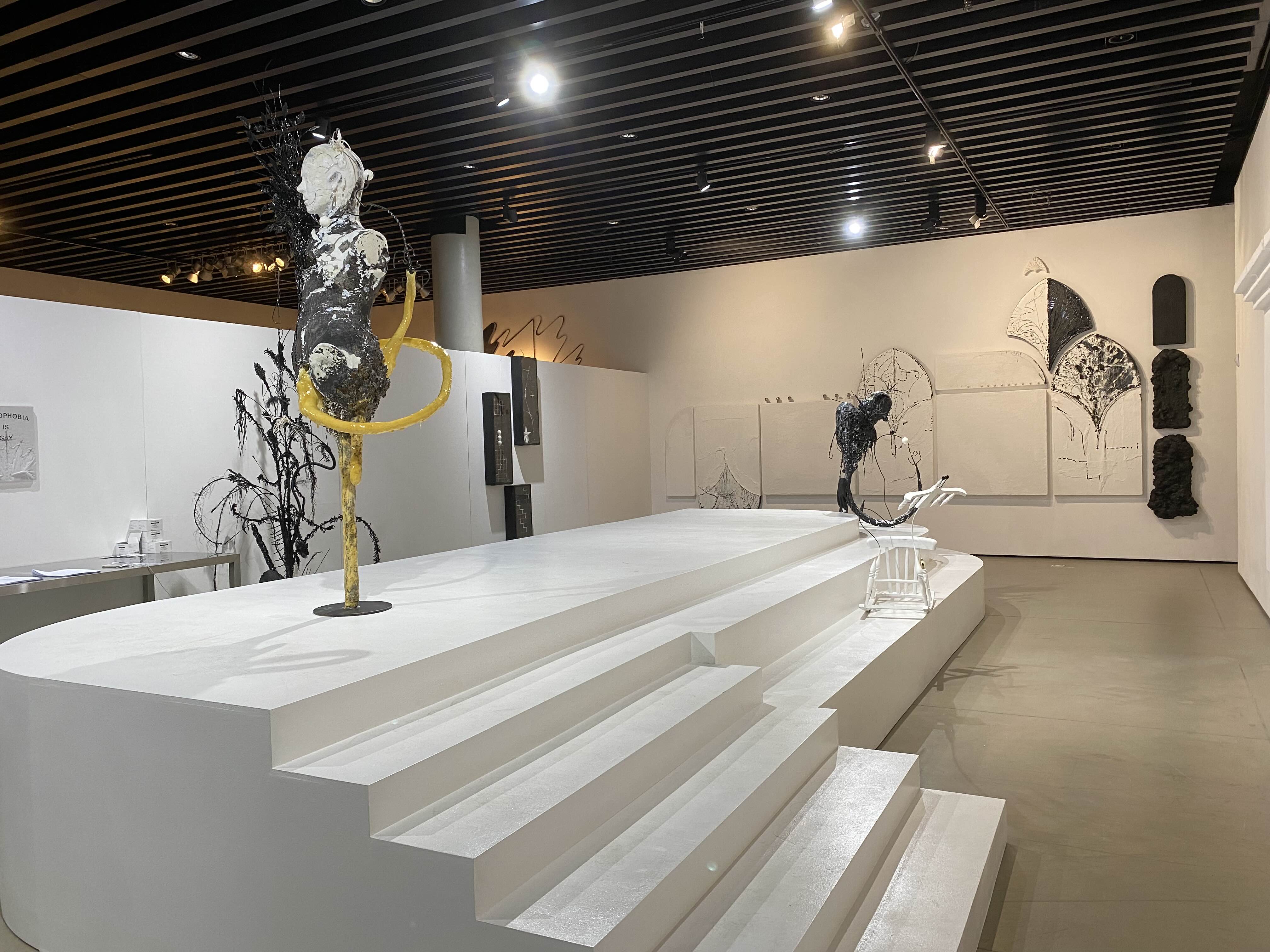 회화와 조각의 낯선 구성을 시도하여 경계에 대한 물음을 제시한다.