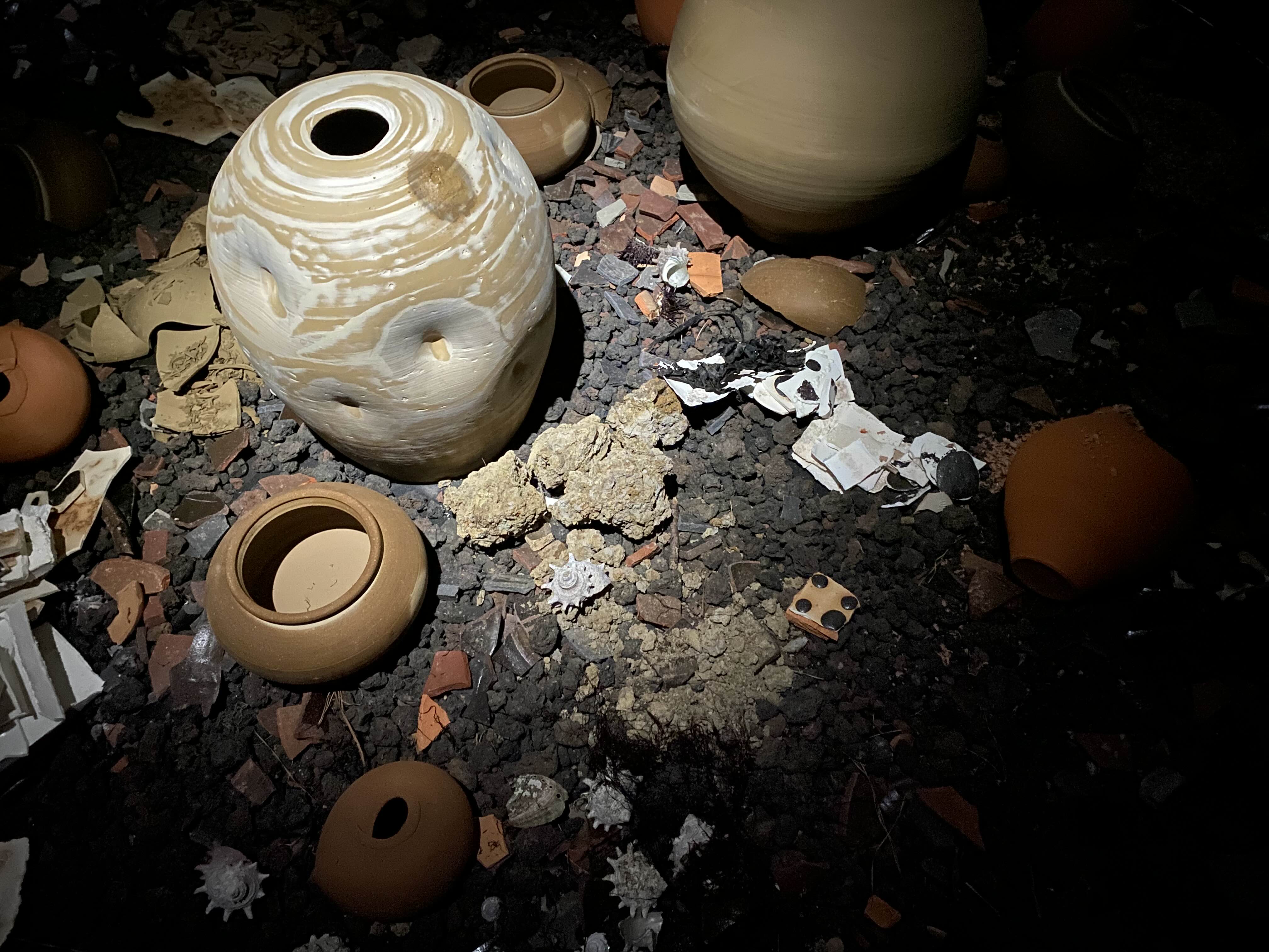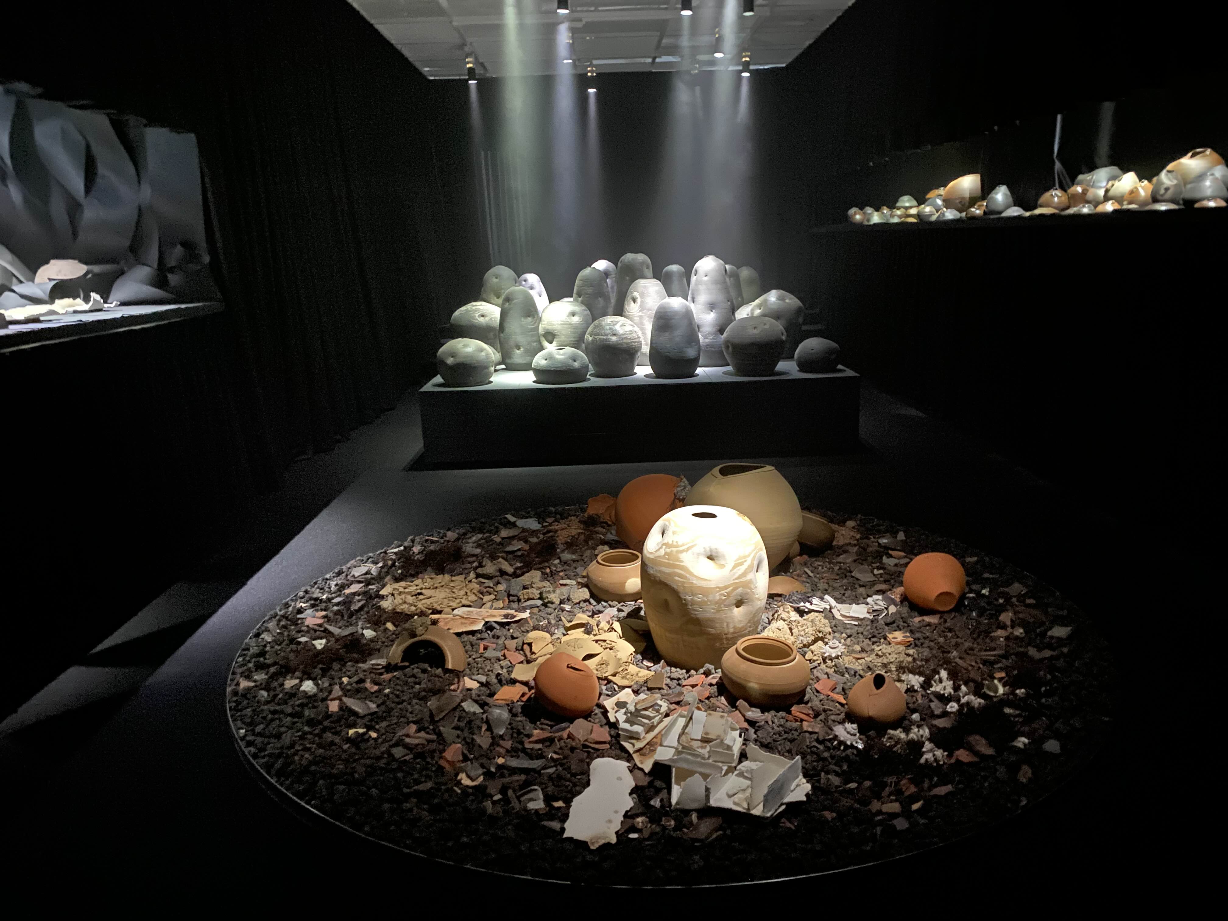 이번 프로젝트는 우란문화재단 소장품인 김창호 작가의 질그릇에서 시작되었다. 프로젝트를 위해 만난 김창호 작가는 저장 용기로써의 옹기 제작뿐만 아니라 이전 세대 옹기장에게서 받은 영감을 자신의 옹기 작업에 조형적인 요소로 치환하는 작업을 하고 있었다. 이러한 옹기는 쓰임의 틀을 벗어나 작가의 내면으로부터 발생하는 리듬적 행위와 만나면서 독특한 조형을 품게 된다. 반면, 김경찬 작가는 쓰임에 대해 지속적으로 고민해 왔다. 그는 플라스틱 등 간편한 그릇의 등장으로 명맥이 끊어질 뻔한 제주옹기에 대한 실질적인 대안으로써 현재의 미감을 반영한 기(器)를 만들고 있었다. 그가 만든 사물은 지금의 생활에서 쓰임으로써 현 시간과 관계를 맺고 존재하게 된다. 정김도원 작가에게 작업은 하나의 온전한 ‘존재’였다. 그는 쓰이거나 쓰이지 않는 것을 크게 중요시하지 않으며, 작업의 시간을 함께한 존재들 속에서 의미를 발견해 작업으로 녹여 냈다.