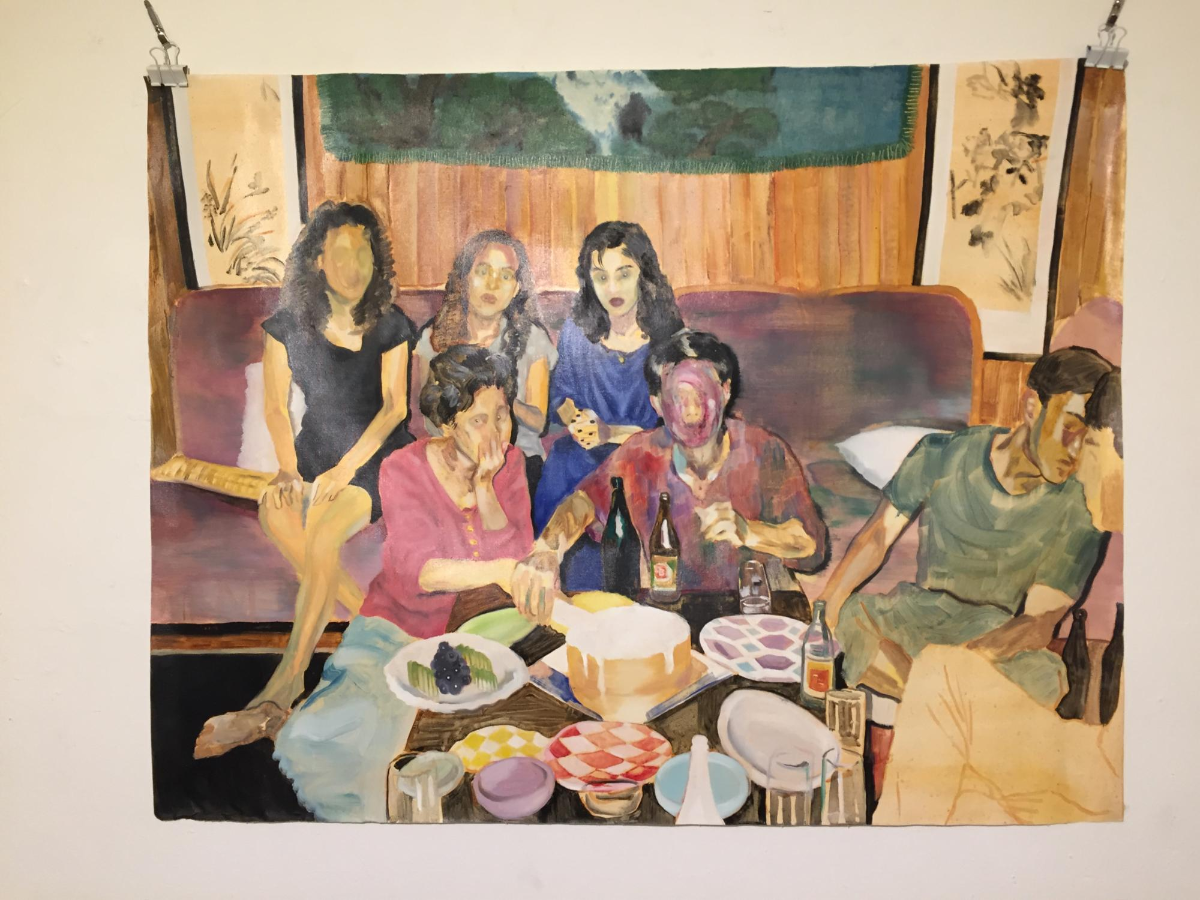 Scare People : Light는 여러 장의 키친타월에 그린 그림입니다. 회화지만 키친타월 여러 개를 이어 붙여 커다란 하나의 그림으로 만들었기 때문에 수공예인 패치워크 느낌도 듭니다.