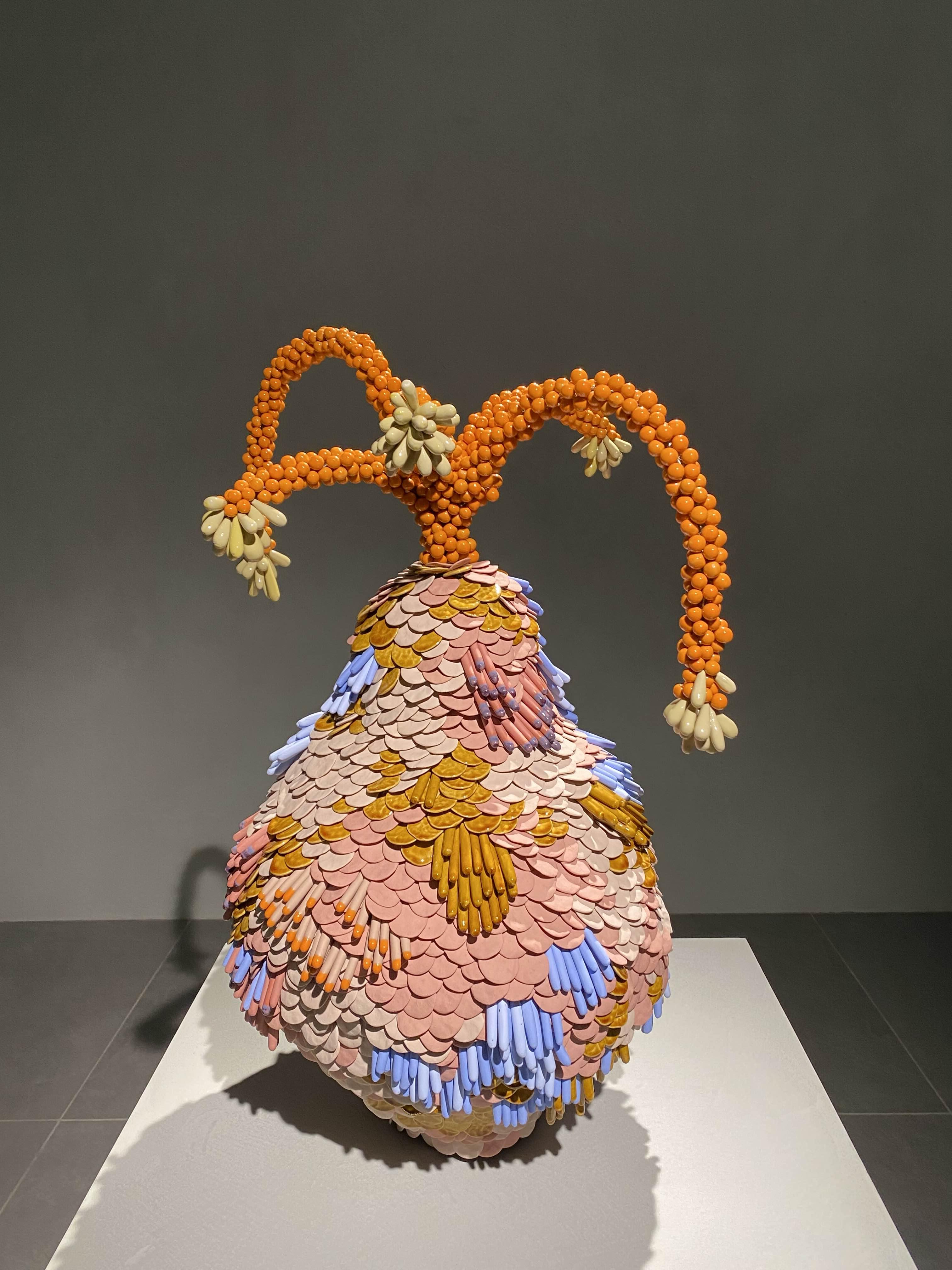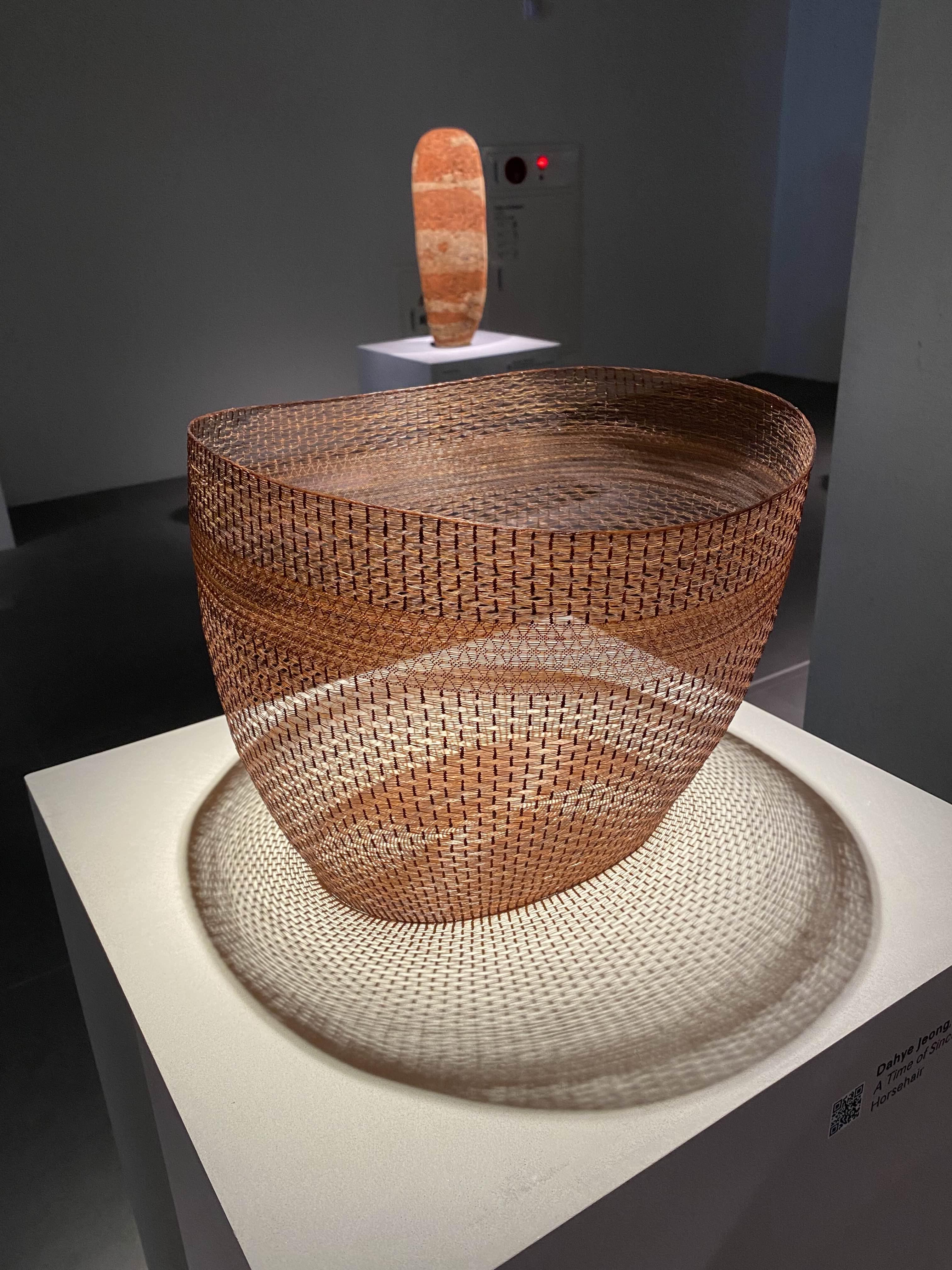 로에베 재단 공예상(LOEWE Foundation Craft Prize)에서는 수백 년간 이어져 온 전통을 현대적으로 재해석하며 영감을 주는 작품을 엄선하여 선보이는 전시입니다. 올해 로에베 재단 공예상의 최종 우승은 정다혜 작가입니다. 말총을 꼬아 빗살무늬 토기 형태로 만들었습니다. 조선시대 중기 사방관(조선시대 사대부들이 예를 갖추기 위해 썼던 관모)에 장식된 마름모꼴 무늬를 활용해 말총 공예의 역사성을 담아냈다고 합니다. 각 작품에 QR코드가 있어 작품에 대한 상세한 설명을 확인할 수 있습니다.
