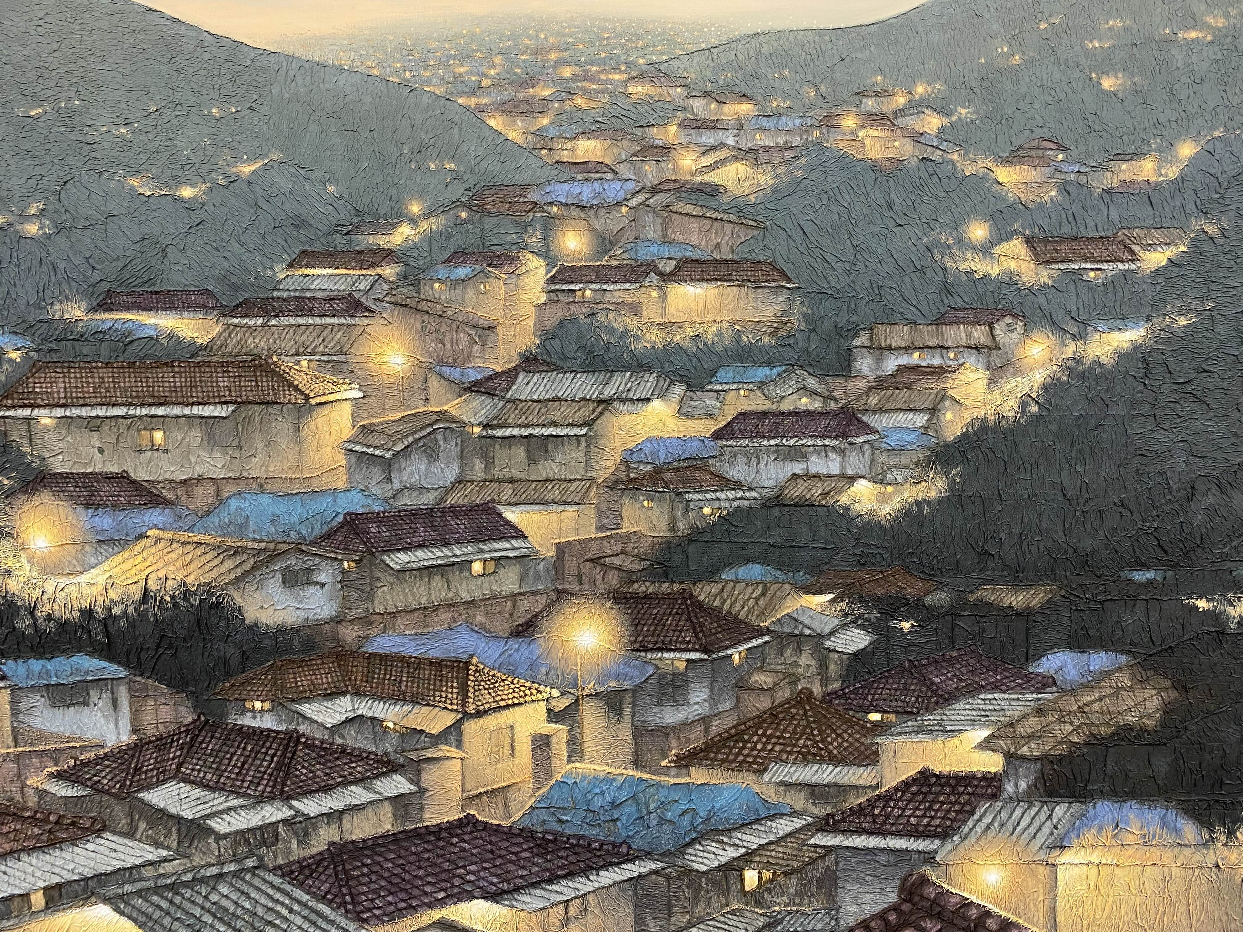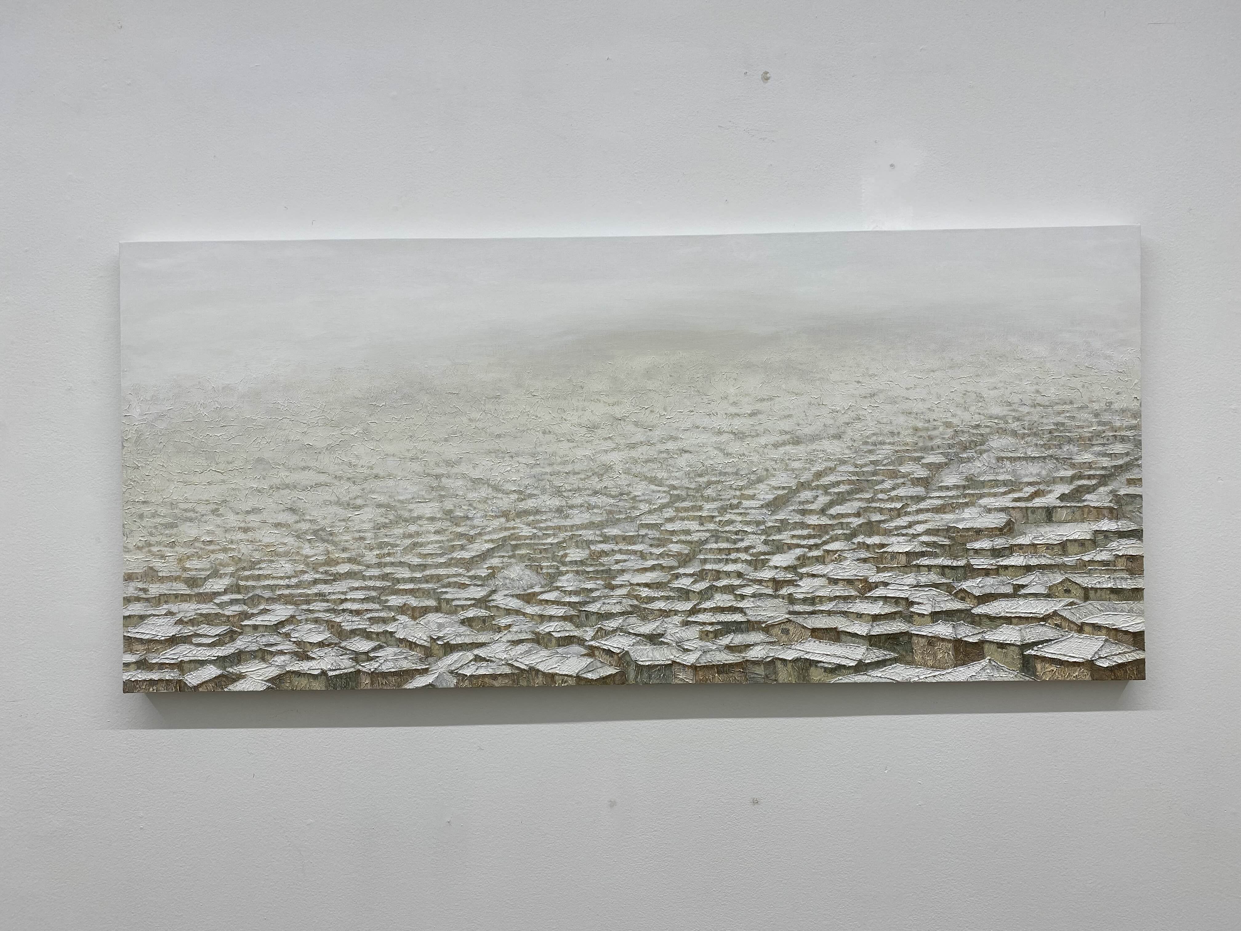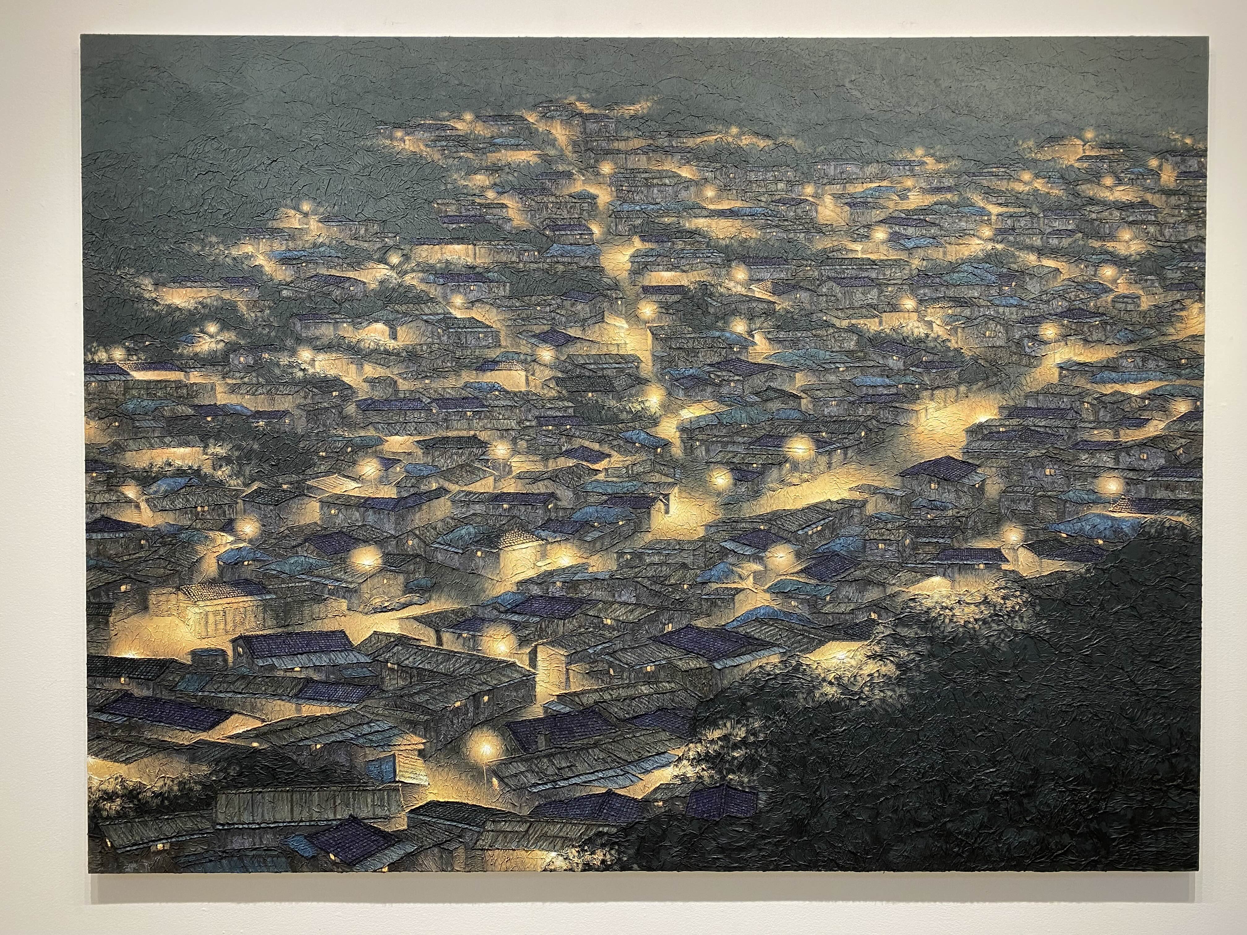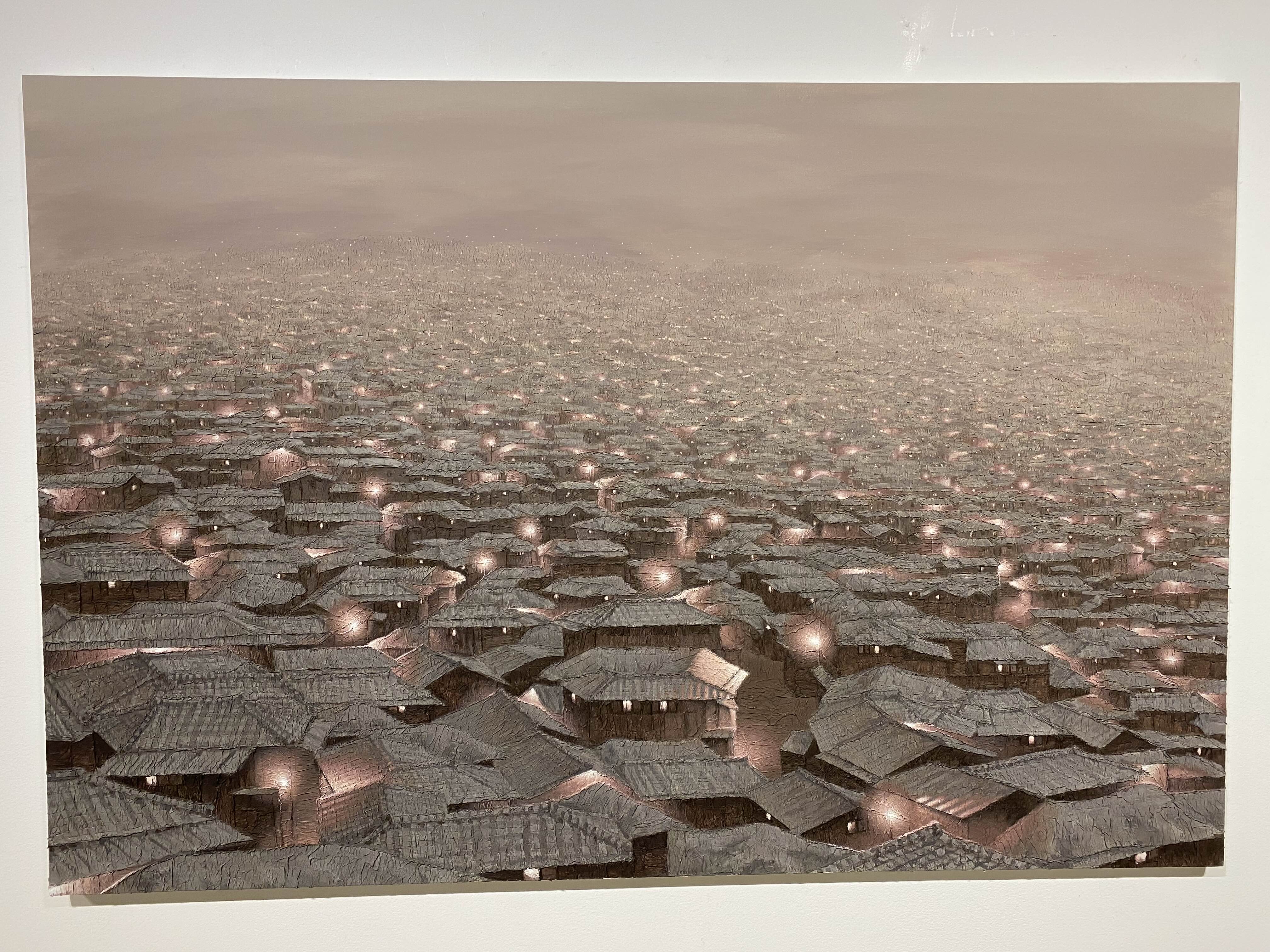 정영주 작가는 2020년 방탄소년단 RM이 작품을 구매했다는 소식이 알려지면서 미술시장에서 핫한 작가로 떠올랐습니다. 이번 전시가 열리기 전에 개인에게 판매하지 않는 1점을 빼고 모든 작품이 판매됐다고 합니다. 작품 속 달동네는 상상 속 공간이라고 하는데요. 달동네 풍경이지만 환하게 켜진 불빛으로 따스한 느낌이 듭니다.