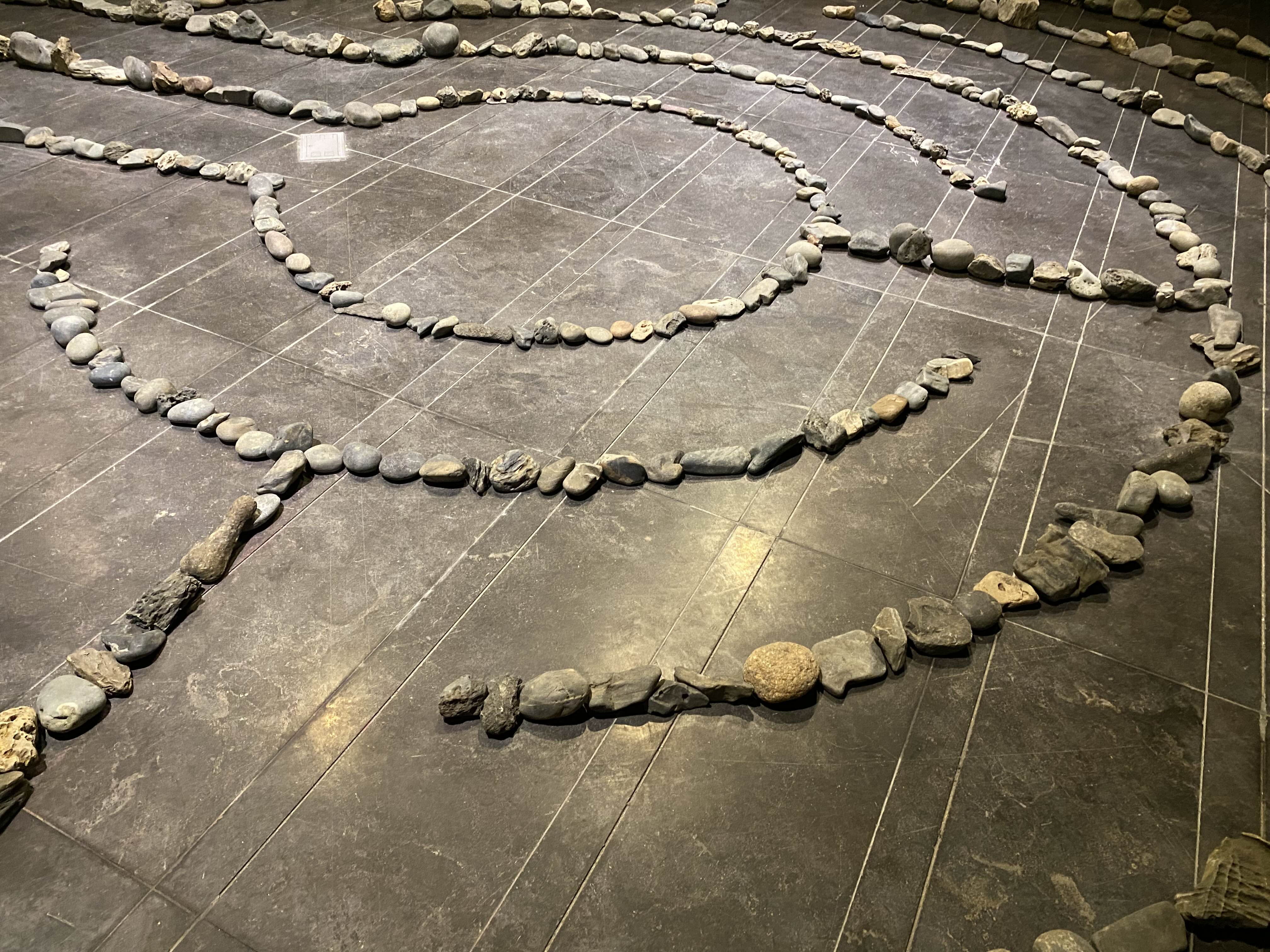 전시장 가운데는 작가가 한국에서 수집한 돌로 만들어진 대규모의 나선형 통행로 <미궁Labyrinth>이 설치되어있다. 마음을 가라앉히기 위해 고안된 이 미궁은 미로Maze와 달리 가망 없는 길이나 막다른 길이 없이 순회할 수 있는 산책로이다. 관람객은 작가의 질문에 대해 생각하며 돌로 만들어진 미궁을 산책한다. 공간을 똑바로 걷는 일반적인 습관을 벗어나 오직 한 갈래의 구불거리는 길을 따라 걷게 하는 행위는 사색에만 집중할 수 있도록 의도되었다. 관람객은 자신을 둘러싸고 있는 환경 안에서 자신의 존재를 인식하는 시간을 가지게 된다.