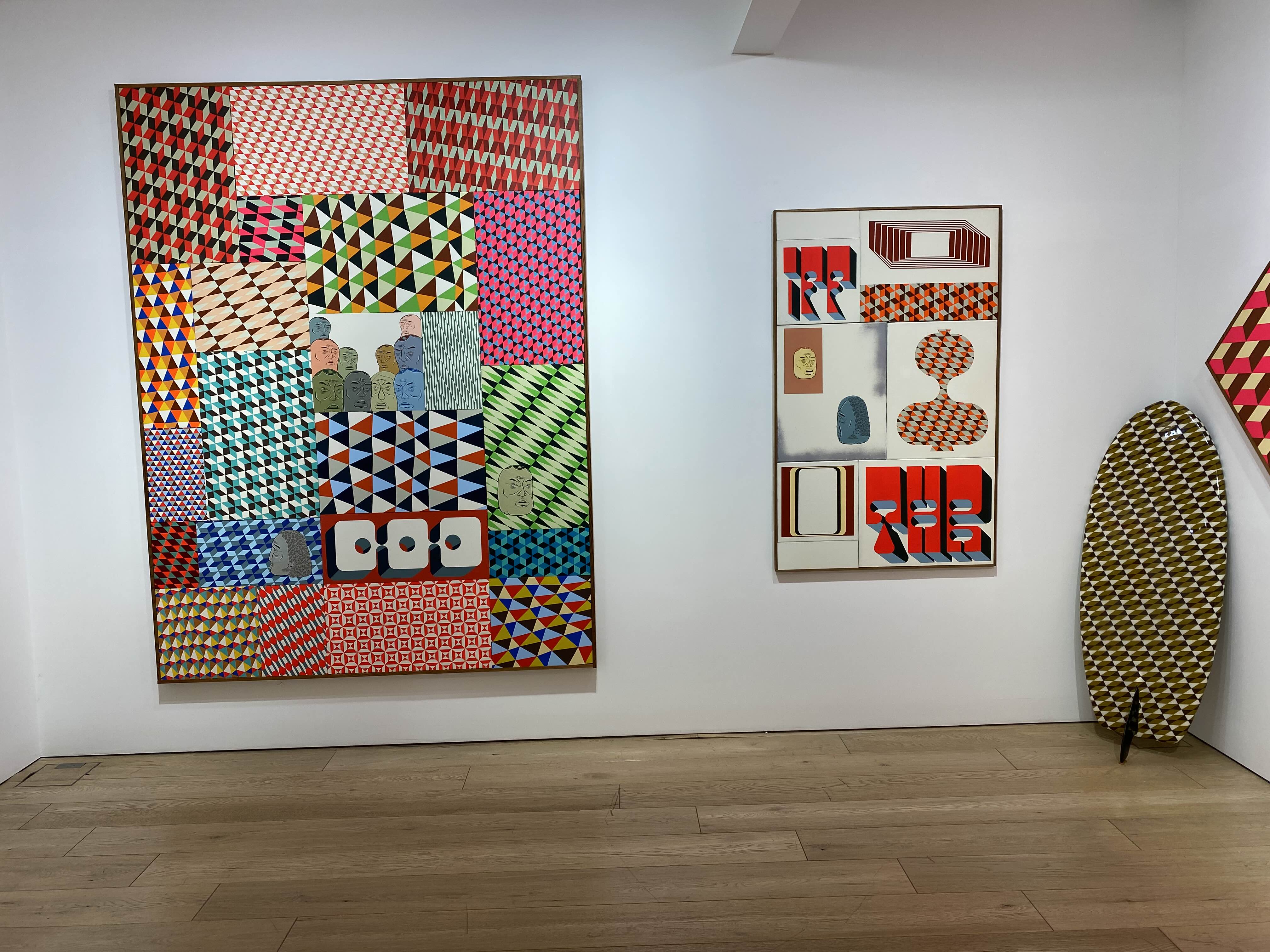 배리 맥기는 샌프란시스코 아트 인스티튜트 미술학과에서 회화와 판화를 전공하였습니다. 이후 사회 운동에 중점을 두며, 어반 리얼리즘, 그라피티, 아메리칸포크아트등에영향을받은 예술운동‘미션 스쿨’과 깊은 관련이 있습니다. ‘트위스트(Twist)’ 라는 닉네임으로 활동했던 그라피티 화가 시절부터 세계적인 작가로 활동하고 있는 지금까지도 소외계층을 향한 그의 적극적인 관심을 보이고 있는데요. 국내에서 처음으로 열리는 배리 맥기의 전시입니다. 이국적인 색상의 패턴만으로 이루어진 작품들이 많았습니다. 그리고 대형 작품을 보면 작은 작품 조각들이 모여 대형작품을 구성하고 있었습니다. 작가는 '우리 마음대로 되는 것은 아니지만, 만약 제 작업을 보는 이에게 이상적인 방법이 있다면, 그저 우연히 마주하는 것입니다.'라는 말이 기억에 남는 전시였습니다.