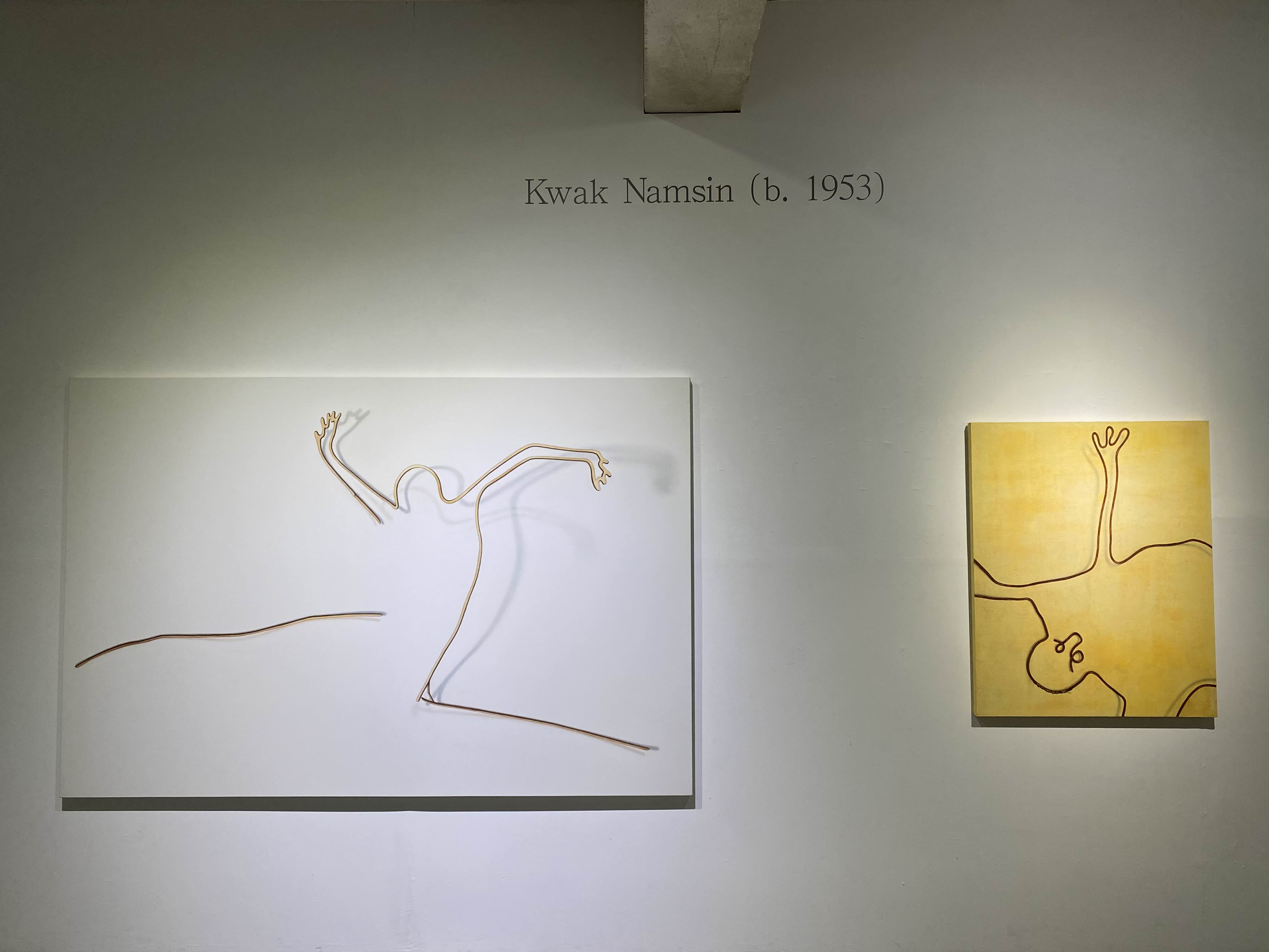 곽남신(Kwak Namsin, b. 1953)은 폭주하는 미디어 환경 속에서 그림자와 실루엣을 통해 이미지의 원시적 기원을 고찰한다. 짧은 노끈과 철선이 형상으로 변이하는 순간은 이미지의 마법 같은 기원을 재현한다. “미래의 회화는 새로운 미디어의 감수성을 닮아갈 것이다. 그러나 소수는 그것에 저항할 것이다”라는 작가의 말처럼 곽남신의 회화는 빠르게 변화하는 시각세계 속에서 이미지의 원초적 생명력을 되뇌게 해준다.