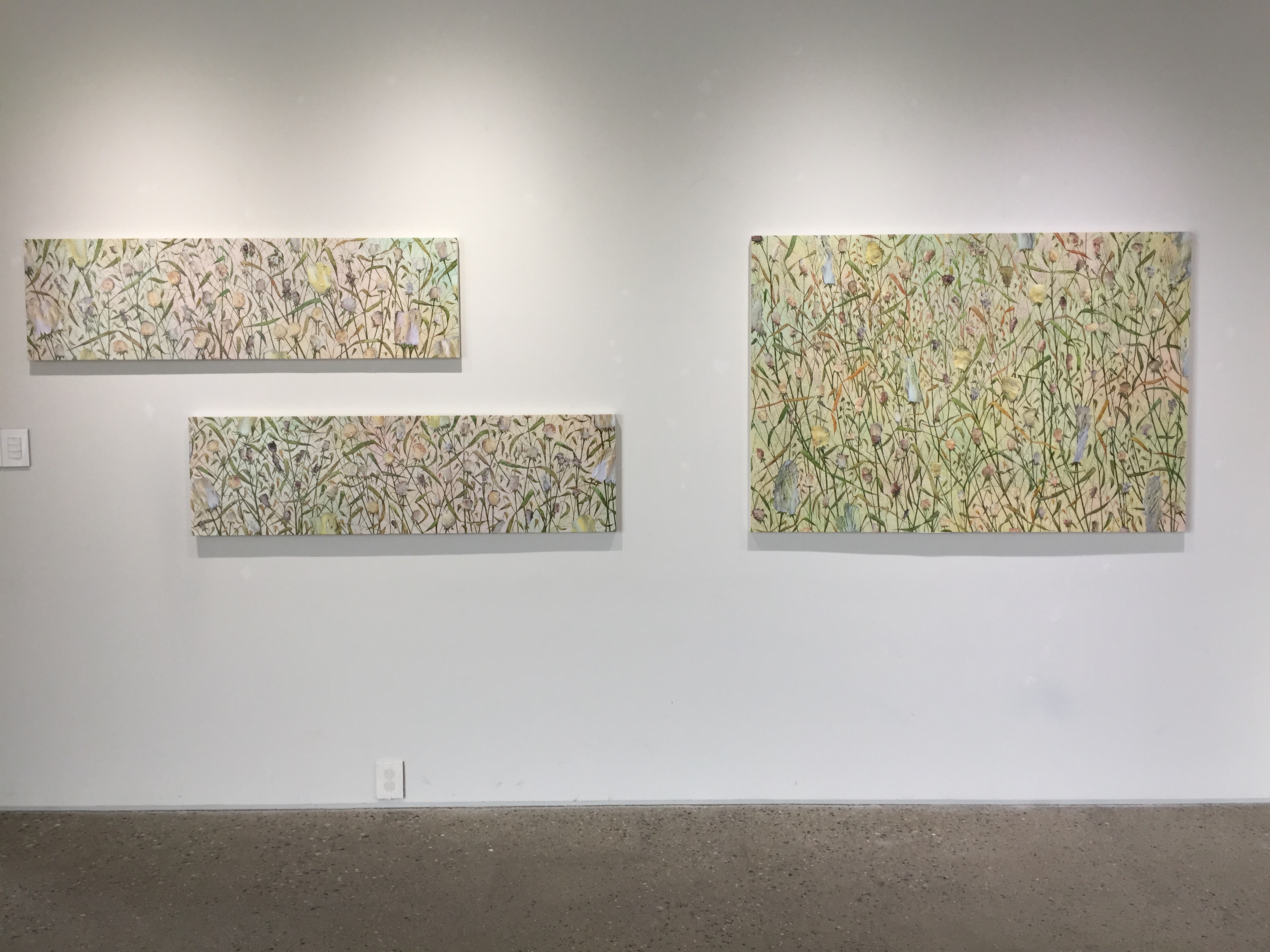 이런저런 소음과 소리, 정겨운 그리움, 우주를 향해 비상하려는 듯 꿈틀거리는 기운, 삶의 무게감 등 화면과 오브제 켜켜이 스미어 있는 물리적/심리적 움직임과 흐름이 포착되거나 소리가 들린다. 저마다의 방식으로 작품에 녹여낸 섬세하고 따스한 들숨과 날숨 20여점이 그것이다. 백진기, 송하나, 유한이, 거리홍 등 네 명의 작가가 페인팅, 콜라주, 조각, 입체 등의 작업을 통해 불어 넣고 또 찾아내고자 했던 ‘숨’이 무엇이었는지, 또 그것들은 세상과 어떤 이야기를 주고받으며 화면과 재료에 스미어 자리했는지를 살펴보는 자리가 되길 바란다.