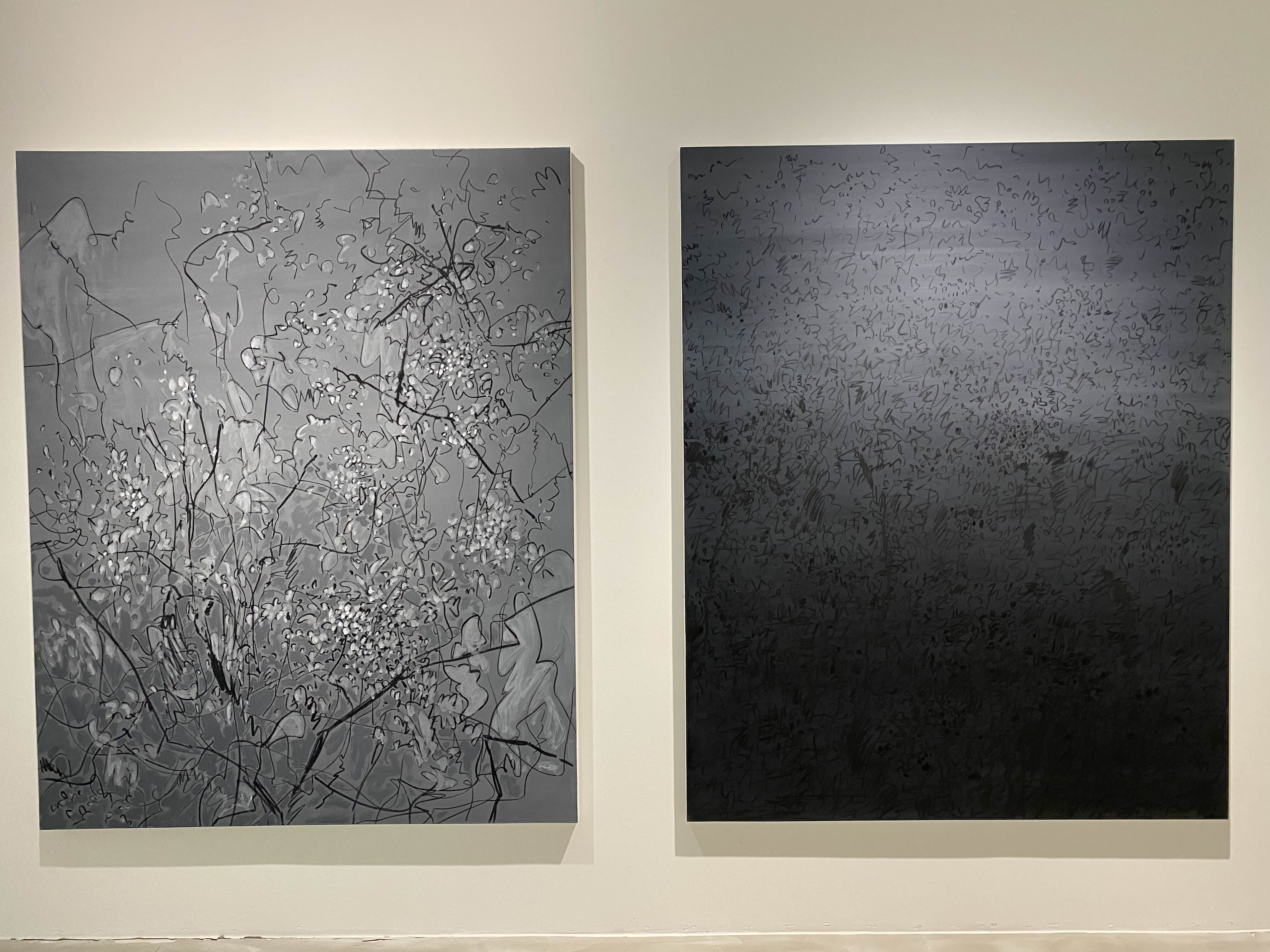 차명희 작가님은 추상화와 사실적 회와의 경계에서 직감적이고 즉흥적인 독특한 표현을 통해 작업을 합니다. 작가님의 이전 작업은 먼저 캔버스에 제소를 바르고 재료가 마르기 전 제한된 시간 속에서 즉시 목탄을 이용해 작업하는 즉흥적 표현 기법이라고 할 수 있는데요. 이번 전시에는 목탄 대신 아크릴 물감과 기타 재료 등을 써서 색을 적극적으로 쓰는 작업으로 그동안 경험하지 않았던 새로운 표현 방법의 작업 내용으로 연장시켰습니다. 그래서 역동적이고 새로운 변화가 느껴집니다. 이런 의미에서 이번 전시는 매우 중요한 의미를 가지며, 최근 몇 년에 이르는 기간 동안 작가님이 새롭게 시도한 다양한 작업들을 선보입니다.