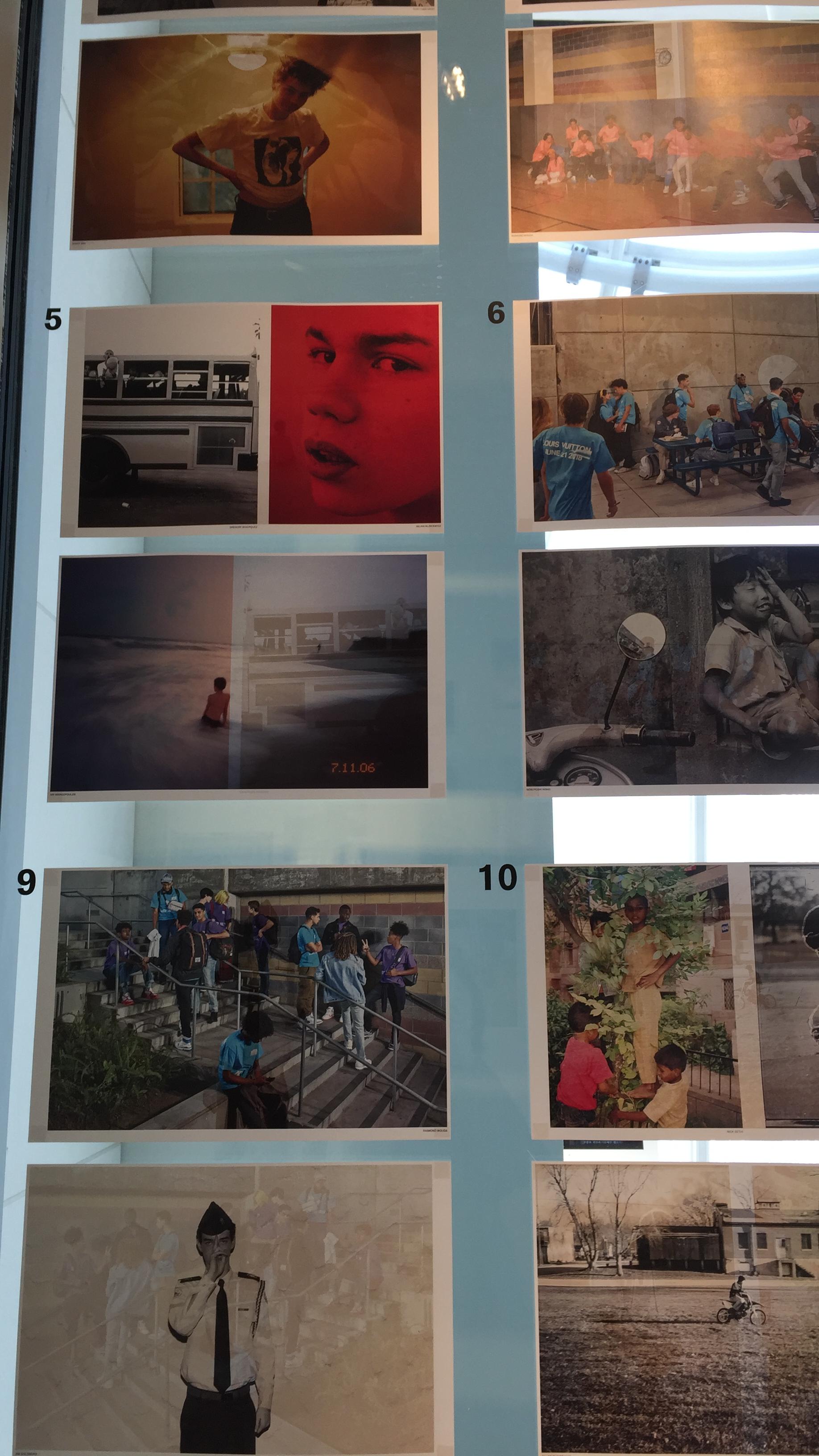 스티커는 입장할 때 안내데스크에서 나눠 준 것입니다. 사진이 반으로 접힌 채 번호별로 쌓여 있습니다. 여러 장의 사진을 디스플레이하는 공간상의 제약이 있었겠지만 반으로 접혀 구김이 간 게 조금 아쉬웠습니다.