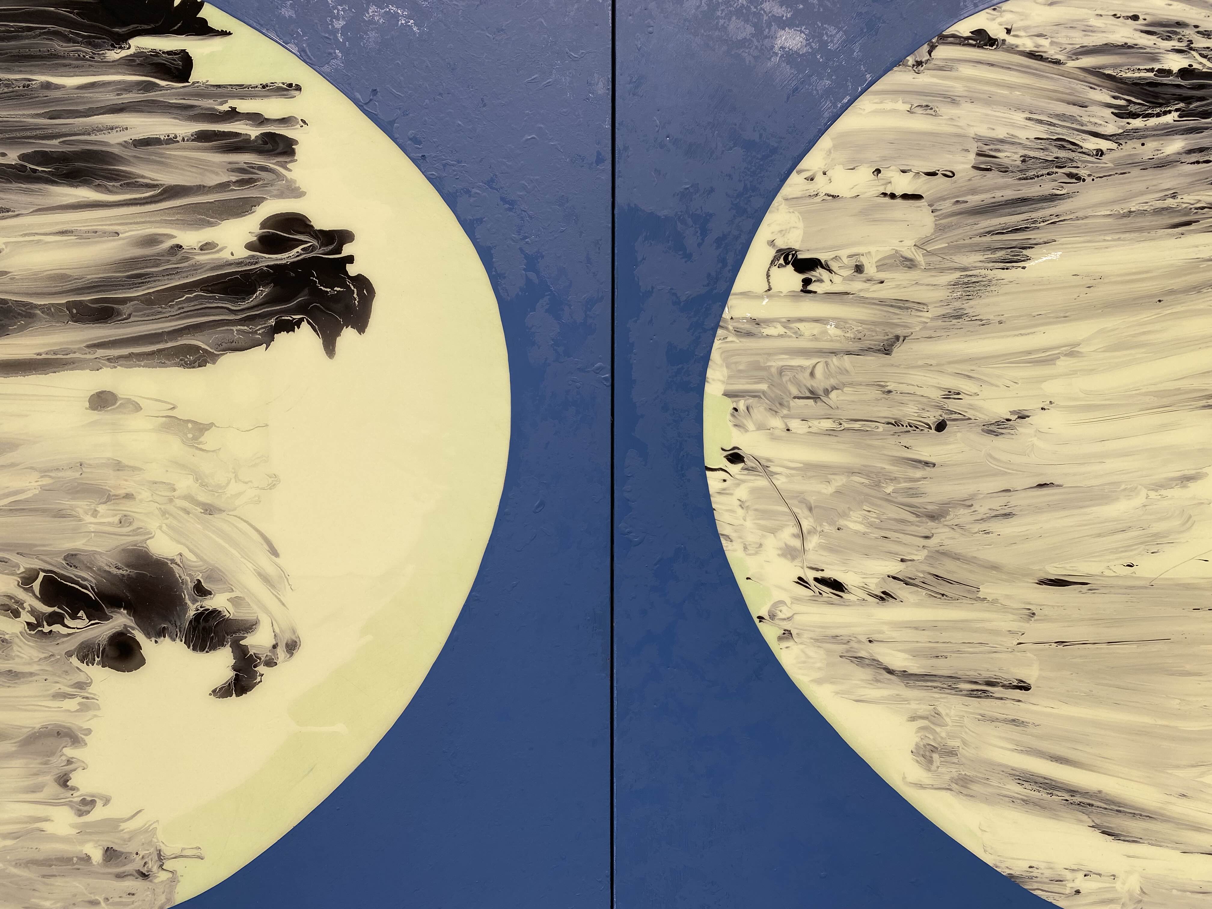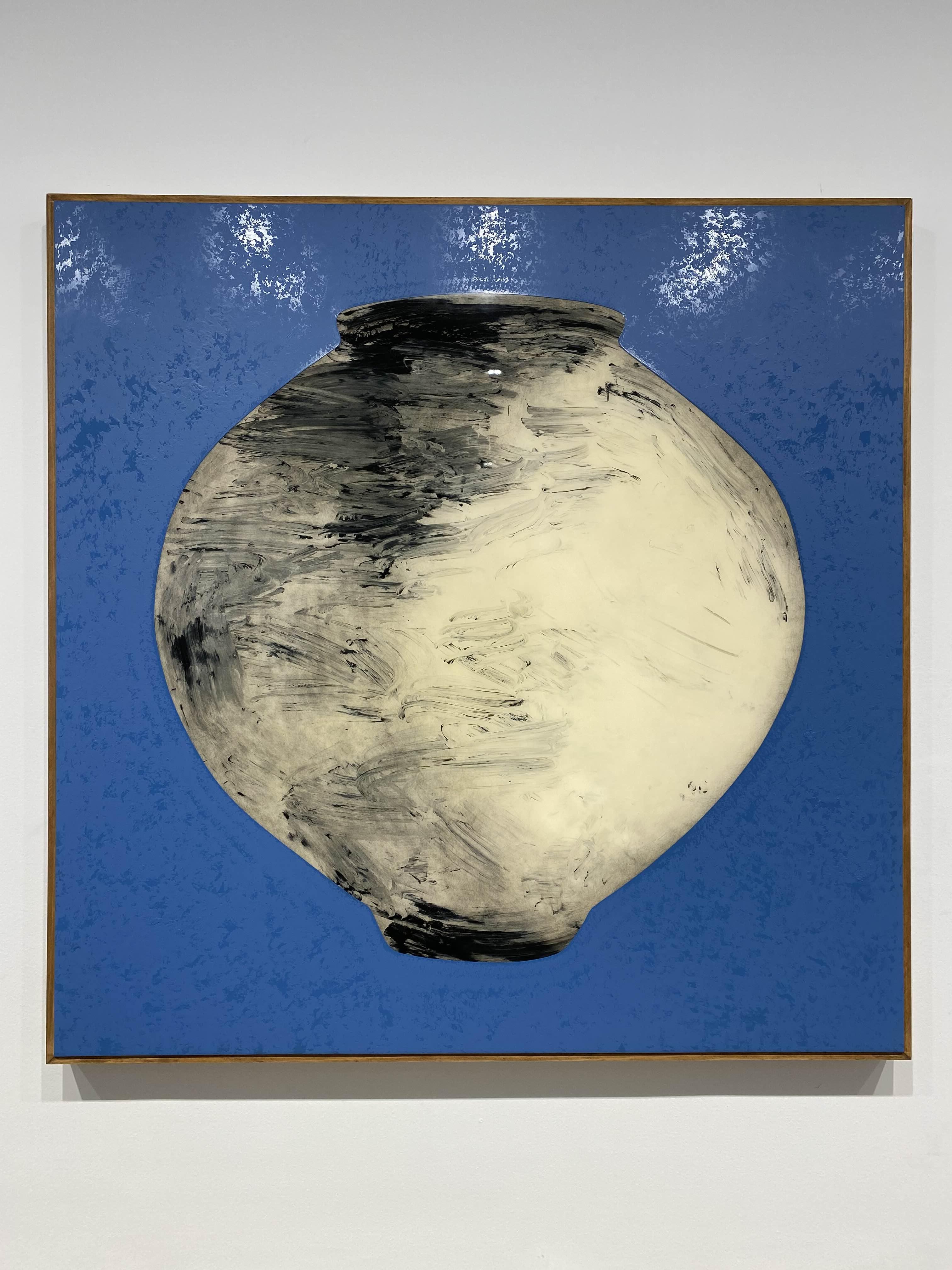 1층 전시장과 두가헌 갤러리의 테마는 ‘달’과 ‘달항아리’다. 강익중에게 ‘달’과 ‘달항아리’는 가장 한국적인 문화와 정서, 미적 가치를 품은 대상이다. 상부와 하부를 합쳐 그 사이를 손으로 잇고 가마에서 하나의 몸채로 완성되는 달항아리는, 그 제작 방식과 형상에서 그가 평생에 걸쳐 몰두한 ‘연결’의 사상을 내포하고 있다. 자연과 시간의 흔적을 머금은 유백색의 은은한 색감과 불완전한 비례의 매혹적인 곡선, 거칠고 매끄러운 표면의 촉각적 질감을 동시에 지닌 <달항아리> 연작은 고즈넉하게 세상을 비추는 밤하늘의 달을 닮았다. 새로운 연작 <달이 뜬다>는 시간의 흐름에 따라 이지러지는 달과 달에서 반사된 태양빛에 의해 달 주변부에 나타나는 형형색색의 달무지개를 떠올리며 완성한 작업이다.