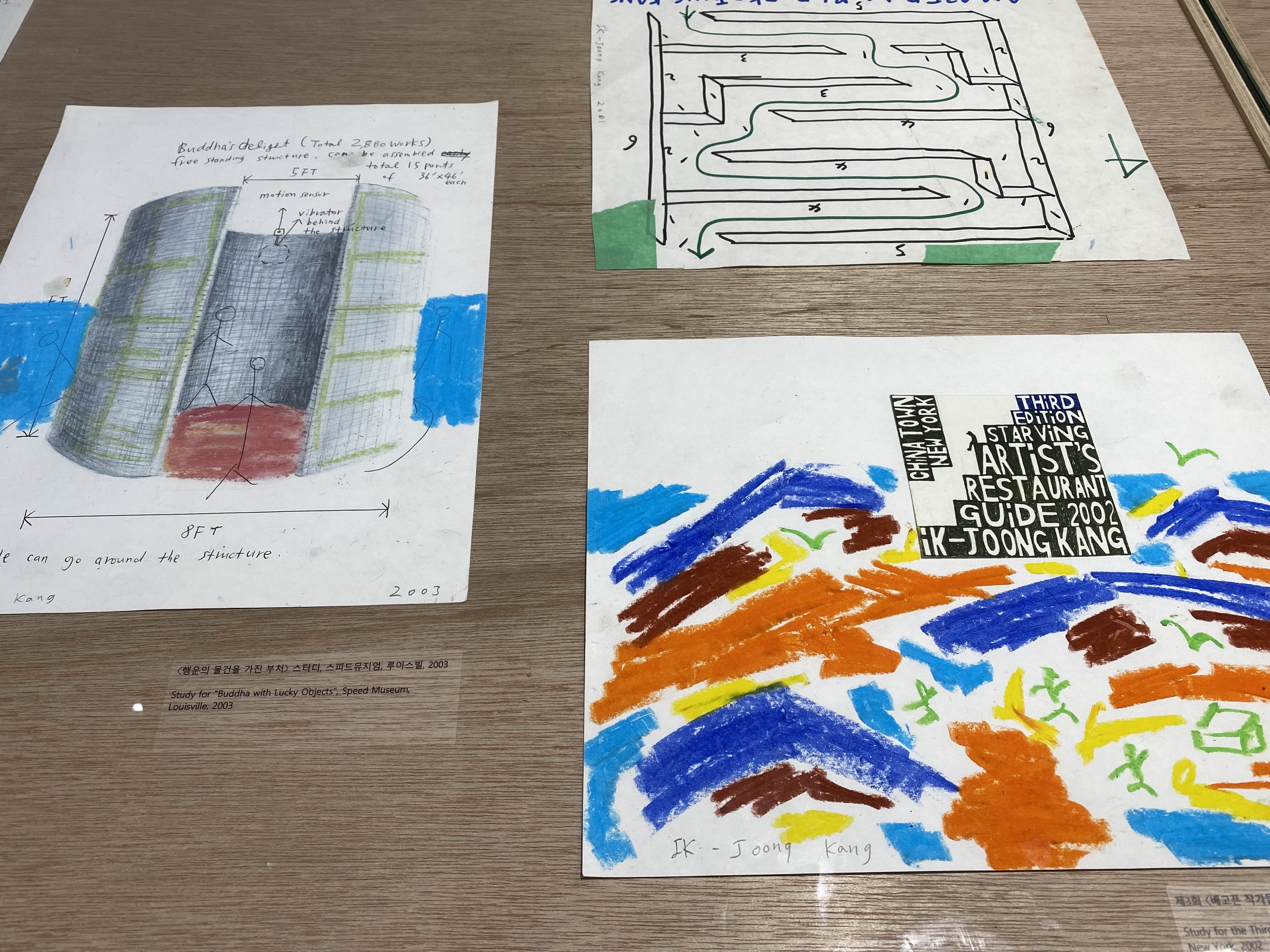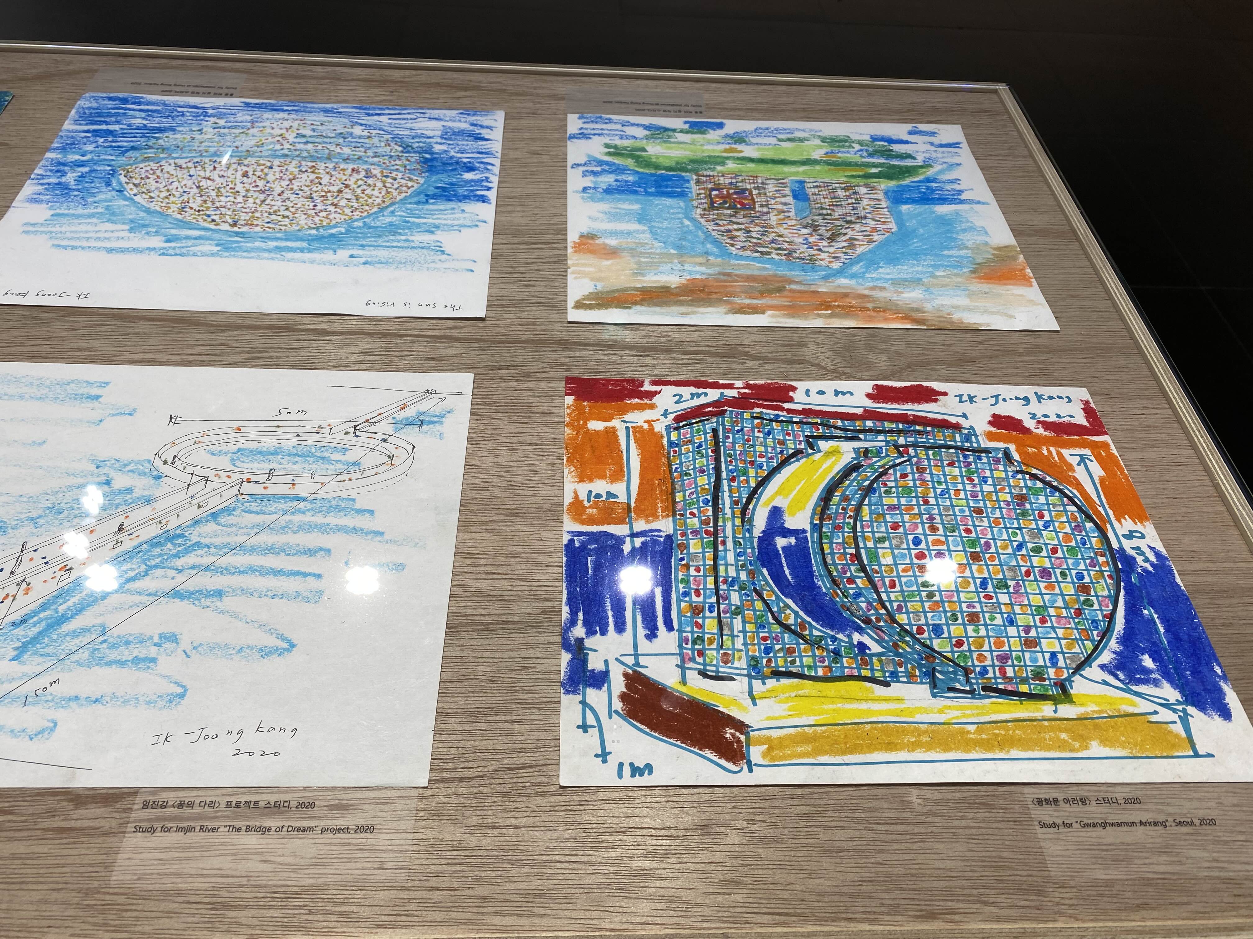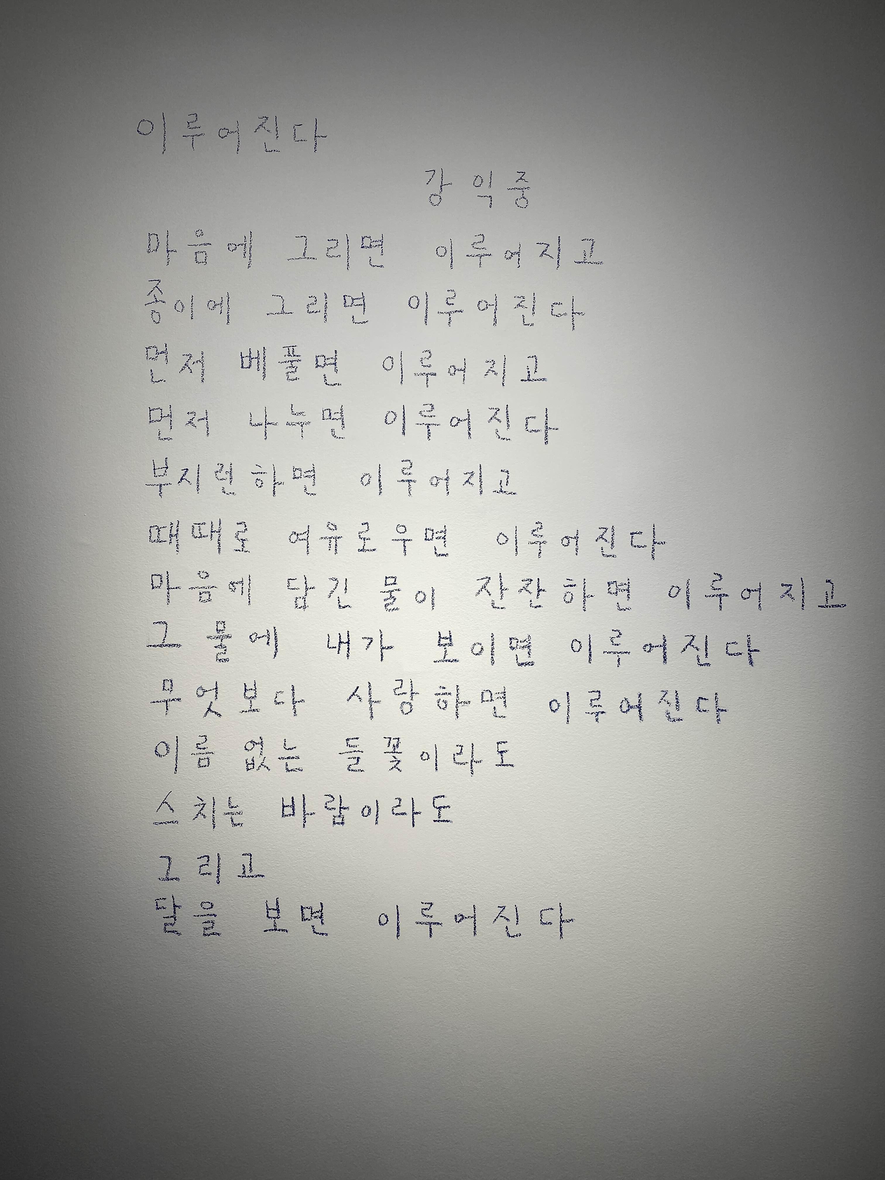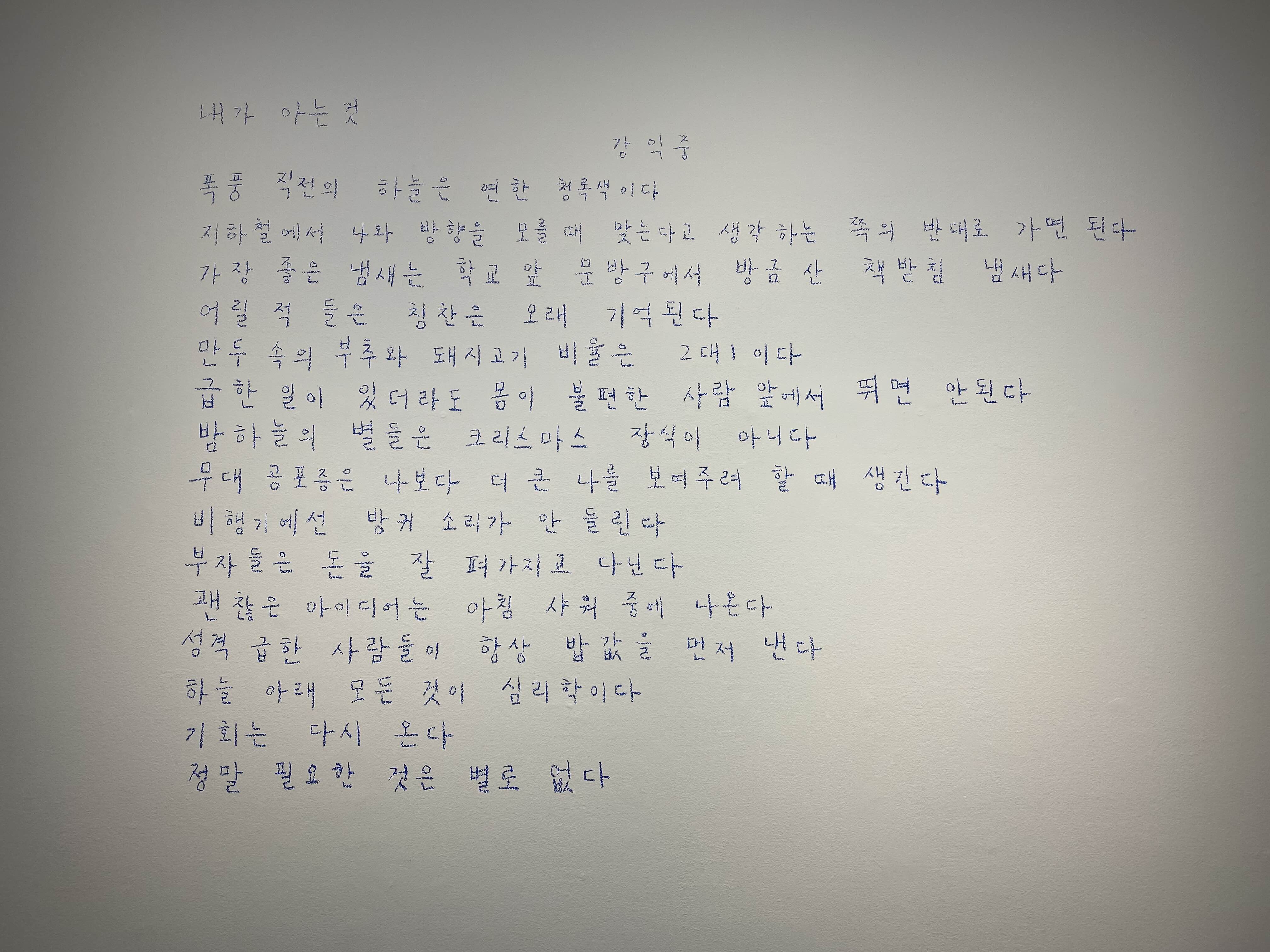 갤러리현대와 두가헌갤러리에서 강익중 작가님의 전시가 진행됐습니다. 한글 자음, 모음으로 된 작품을 통해 작가님의 작품을 처음 접했는데요. 오랜만에 다시 작품을 만나게 되어 반가웠습니다. 1층은 달과 달항아리, 2층은 산과 자연, 지하는 언어와 삶의 지혜를 엿볼 수 있는 작품들로 채워졌습니다. 지하에 작품 구상을 위해 오일 파스텔로 쓱쓱 스케치하는 영상을 통해 작품을 진행하는 과정을 볼 수 있어 흥미로웠습니다. 스케치들도 전시되어 쭉 살펴보니 이전에 접한 작품의 이미지를 발견하는 즐거움도 있었습니다.