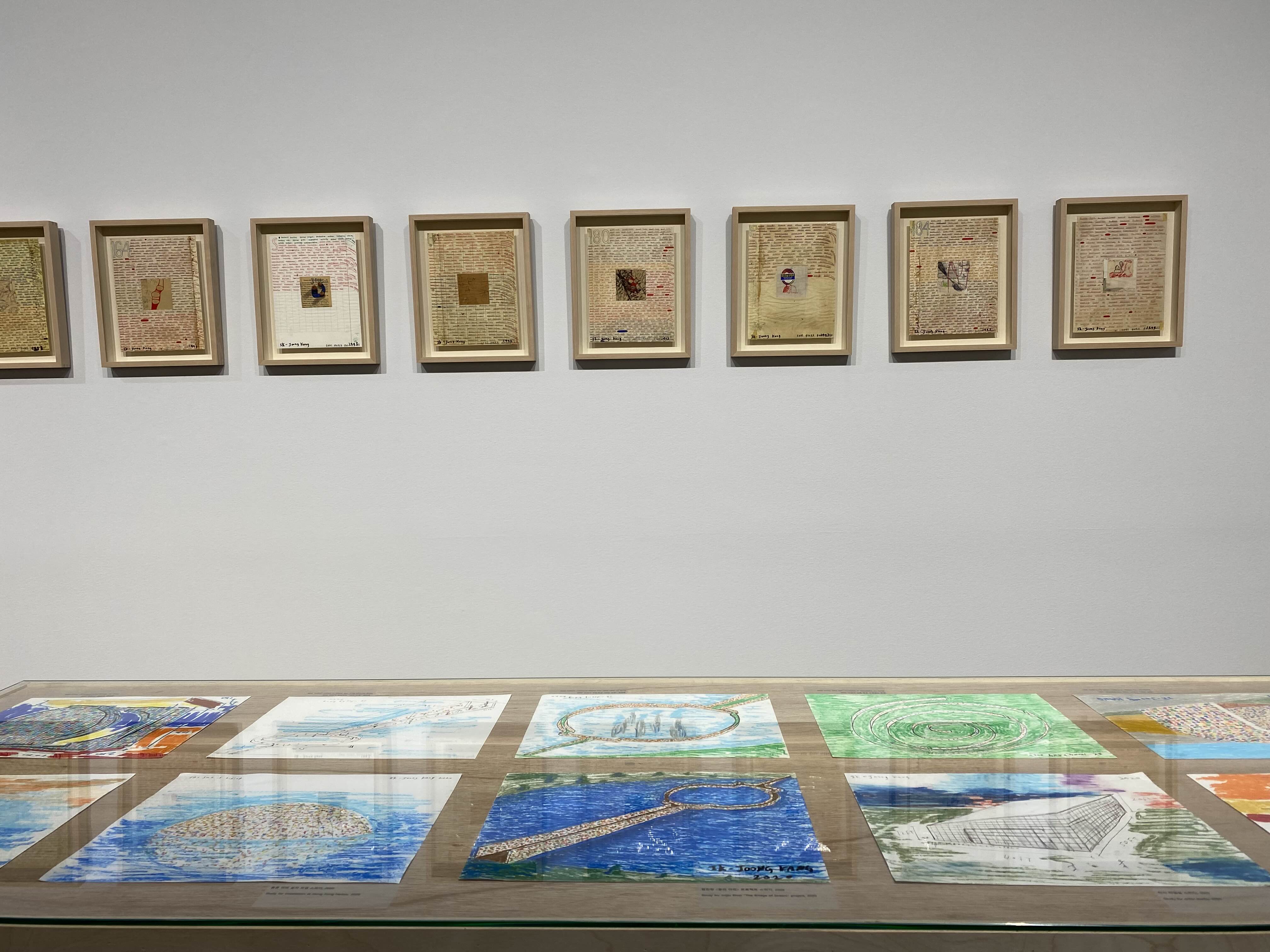 지하 전시장은 언어와 삶의 지혜를 엿볼 수 있다. <내가 아는 것> 연작은 작가가 일상 속에서 채득한 지혜가 담긴 짧은 문장을 한글과 영어로 적는 대표작으로, 유쾌한 웃음과 울림을 전한다. 서로 다른 문화를 한데 모아 집약하여 시공간을 초월하는 집단적 목소리를 만들어내는 강익중 작가의 핵심적인 연작 중 하나다. 알파벳 하나하나가 모여 단어를 만들고 뜻을 이루는 문장이 되는 이 작업은 개인이 모여 사회를 이루고 우리가 모여 하나를 이루는 작가의 작품 세계에 있어 핵심 요소인 ‘연결성’을 함축한다. 전시장을 가로지르는 테이블 위에는 1990년대부터 최근까지 작가가 선보였던 전시나 공공 프로젝트의 스케치와 미공개 아카이브를 확인할 수 있다. 강익중은 1980년대부터 지금까지 멈추지 않고 세계를 연결 짓는 중이다.