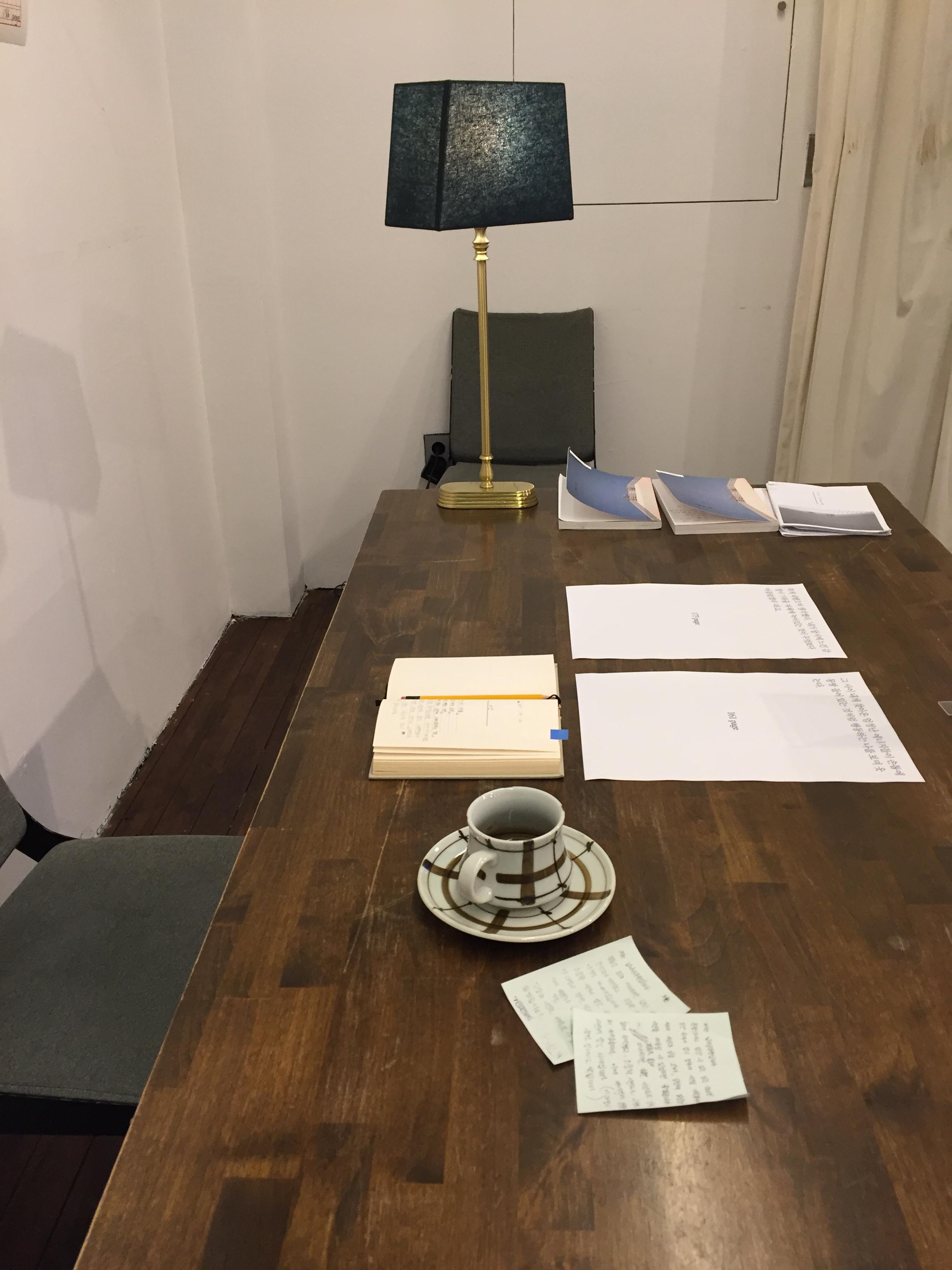 작업하는 서재를 재현한 곳입니다. 책에 관련된 메모, 책이 나오기까지 책의 구성, 레이아웃에 대한 내용 들을 확인할 수 있습니다.