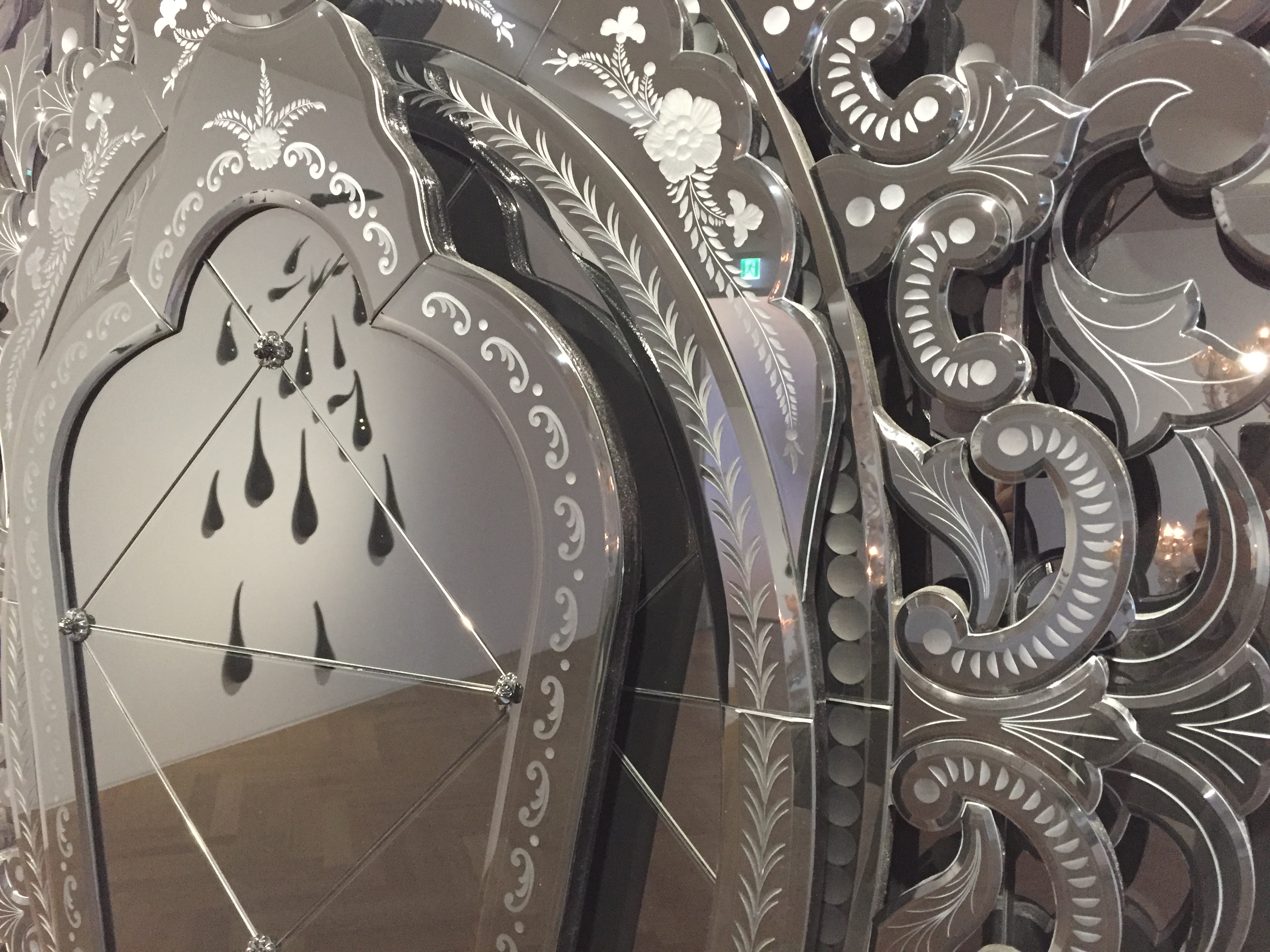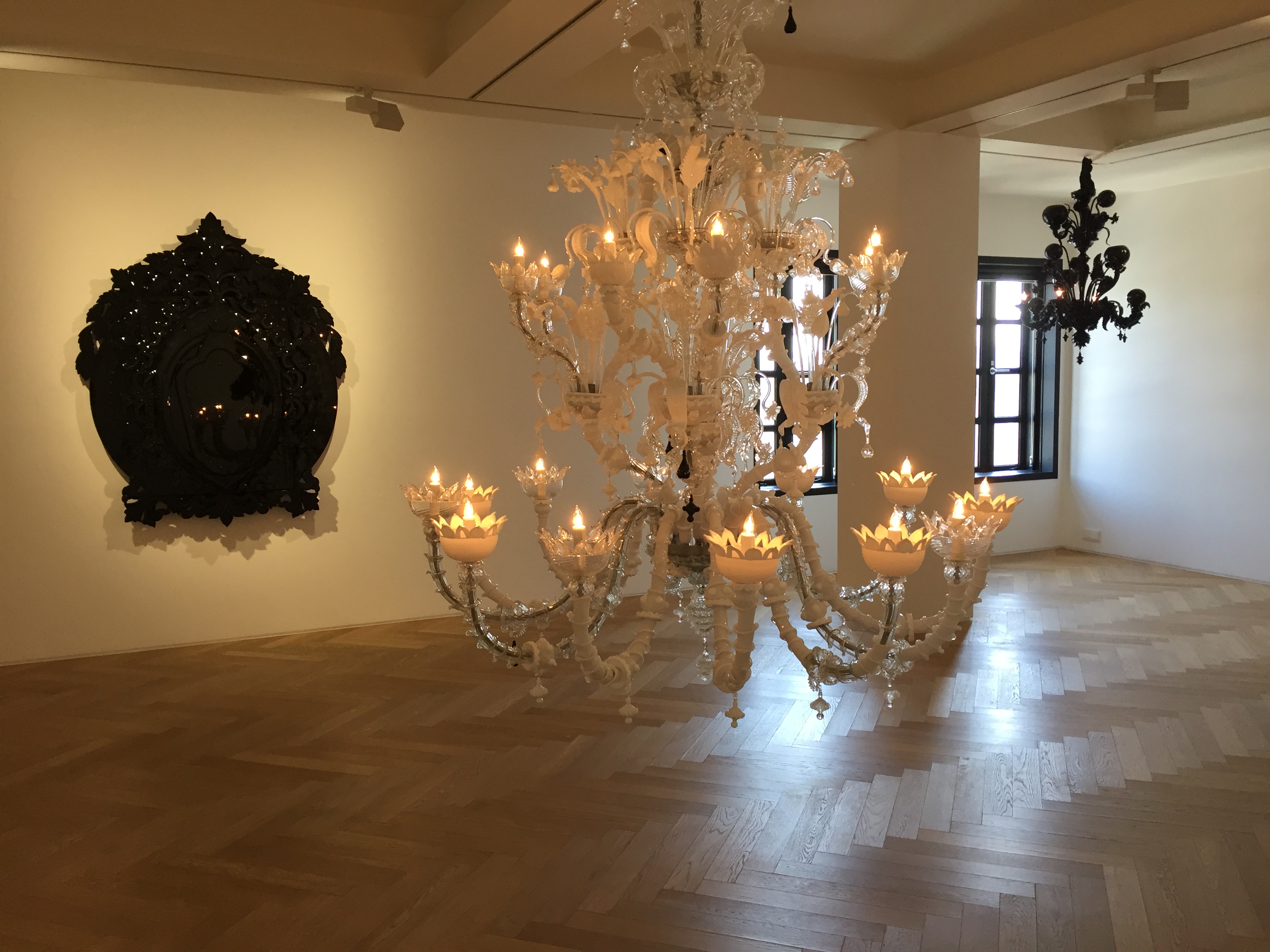 윌슨은 보다 복잡한 작업과 조각에 대해서도 탐구해왔다. 2003년 제50회 베니스 비엔날레 미국관 전시 <Speak of Me as I AM>에서 그는 무라노 섬의 장인들에게 18세기 베네치아 레초니코 양식의 대형 샹들리에 제작을 의뢰했다. 무라노 섬은 13 세기부터 베니스 유리공예의 중심지인 곳이다. <Chandelier Mori>(2003)라는 제목의 이 조각품은 베니스 유리공예 역사에서 최초로 만들어진 검은 유리 무라노 샹들리에가 되었다. 그 후 17년 동안 작가는 그 오브제와 오브제의 공공의 이용, 재료의 역사를 탐구하면서 샹들리에 및 다양한 검은색 무라노 거울을 만들어왔다.