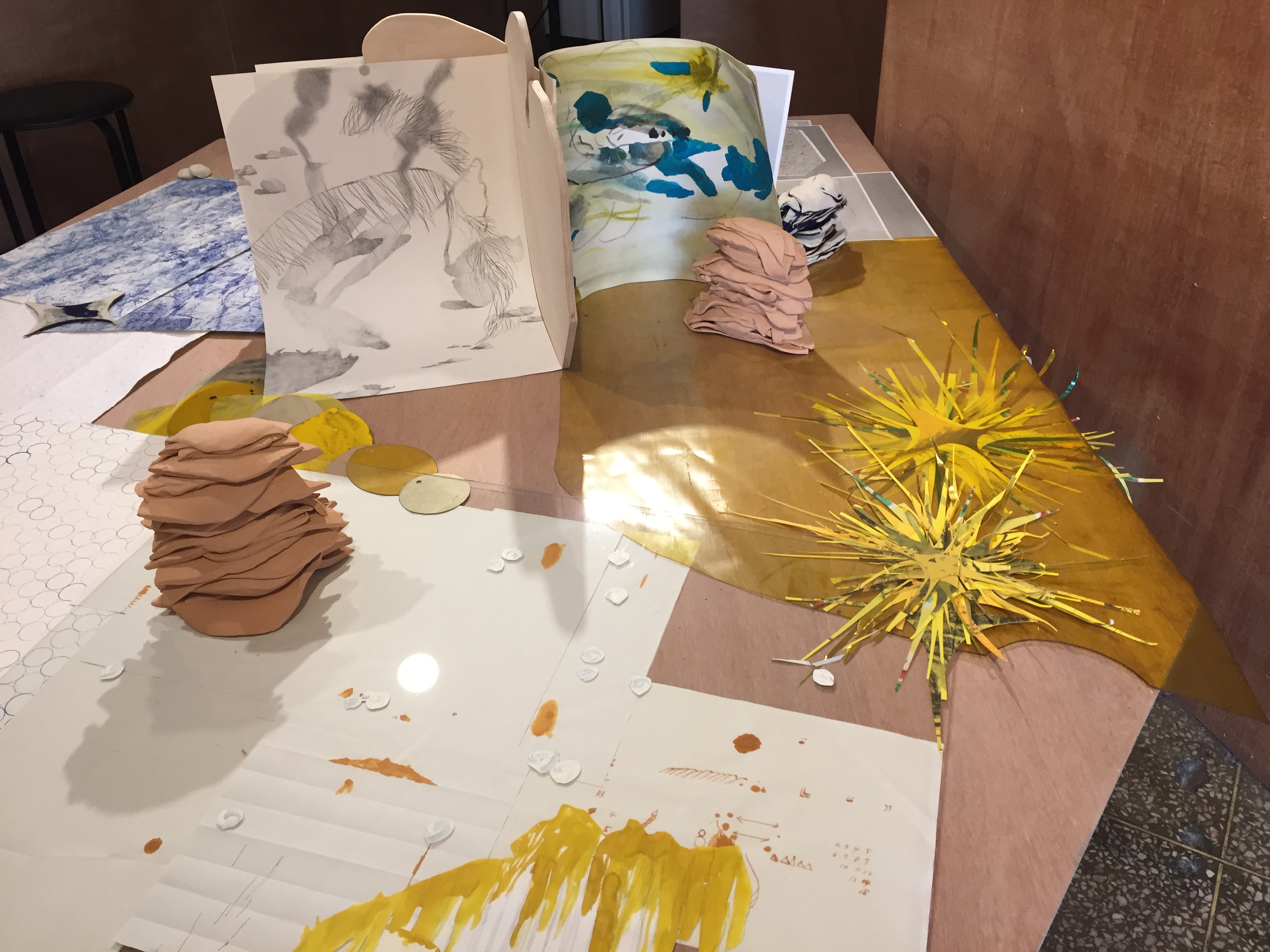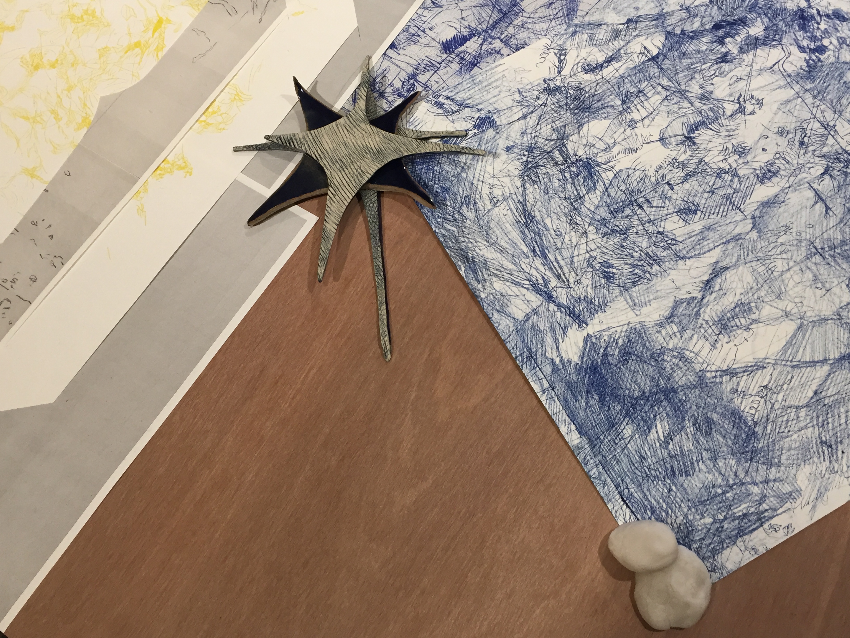권지연 작가에게 '그'라는 존재는 이 순간에 우리를 살게 한 중요한 개인이라고 합니다. 그에 대한 감정, 이야기를 다양한 이미지로 풀어냈습니다. 이번 전시에 산, 원, 별이 많이 보이는데요. '그의 산'이라는 제목처럼 산과 산에서 볼 수 있는 원, 별의 이미지들을 종이에 연필로 그리거나, 종이로 표현하거나 그리고 세라믹으로 다양하게 표현하고 있습니다. 그래서인지 그와 산에 대해 몰입하여 생각하는 것에 도움이 되는 것 같습니다.