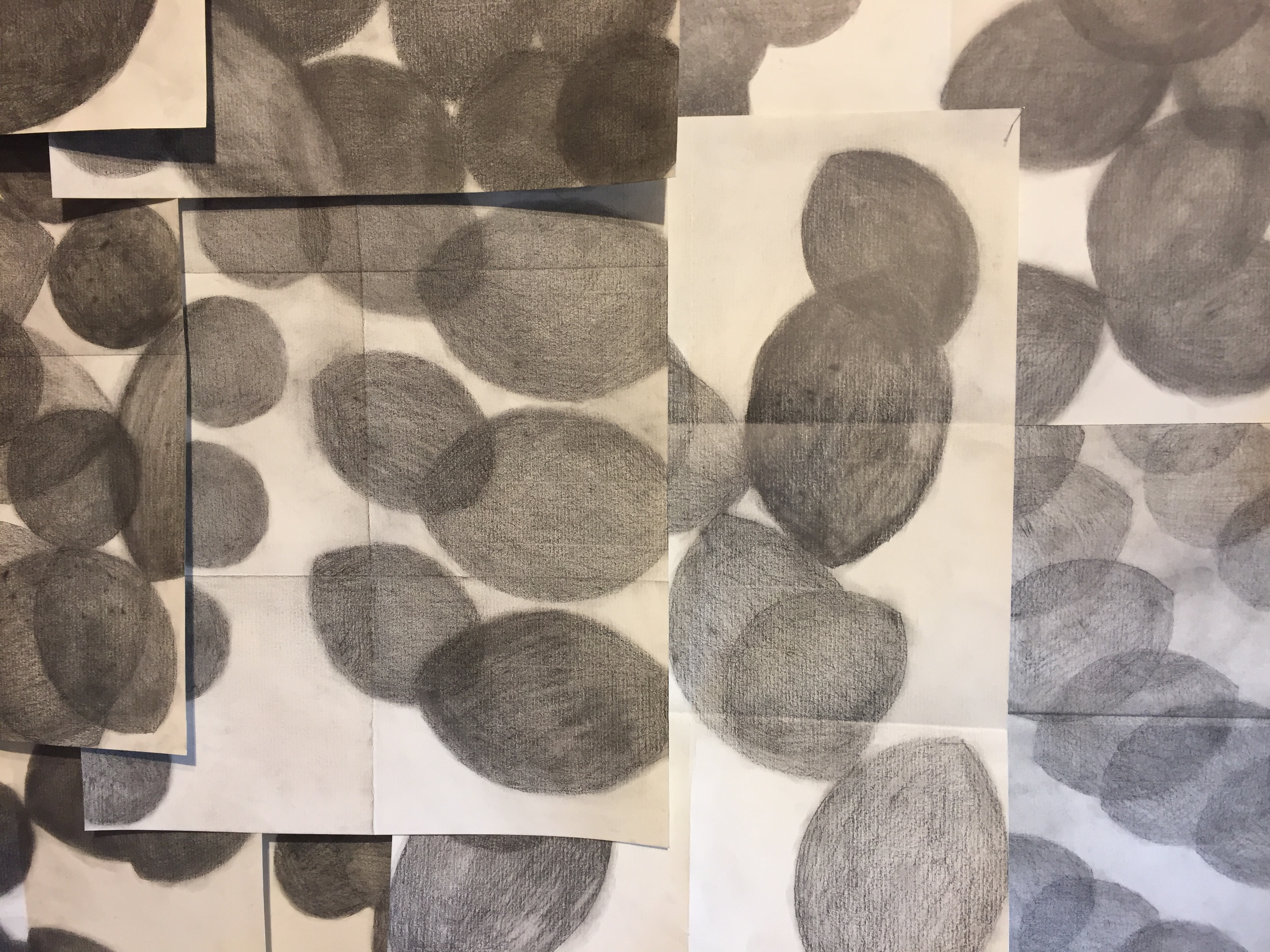 숲의 나뭇잎 하나하나 옮겨 채집하듯 연필로 원을 그려내고, 매만져 도자로 별을 굽고 쌓아 올려 무덤을 만들고.