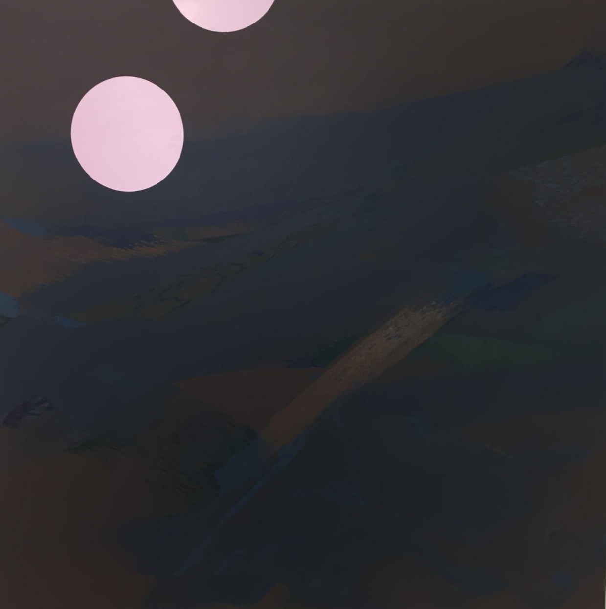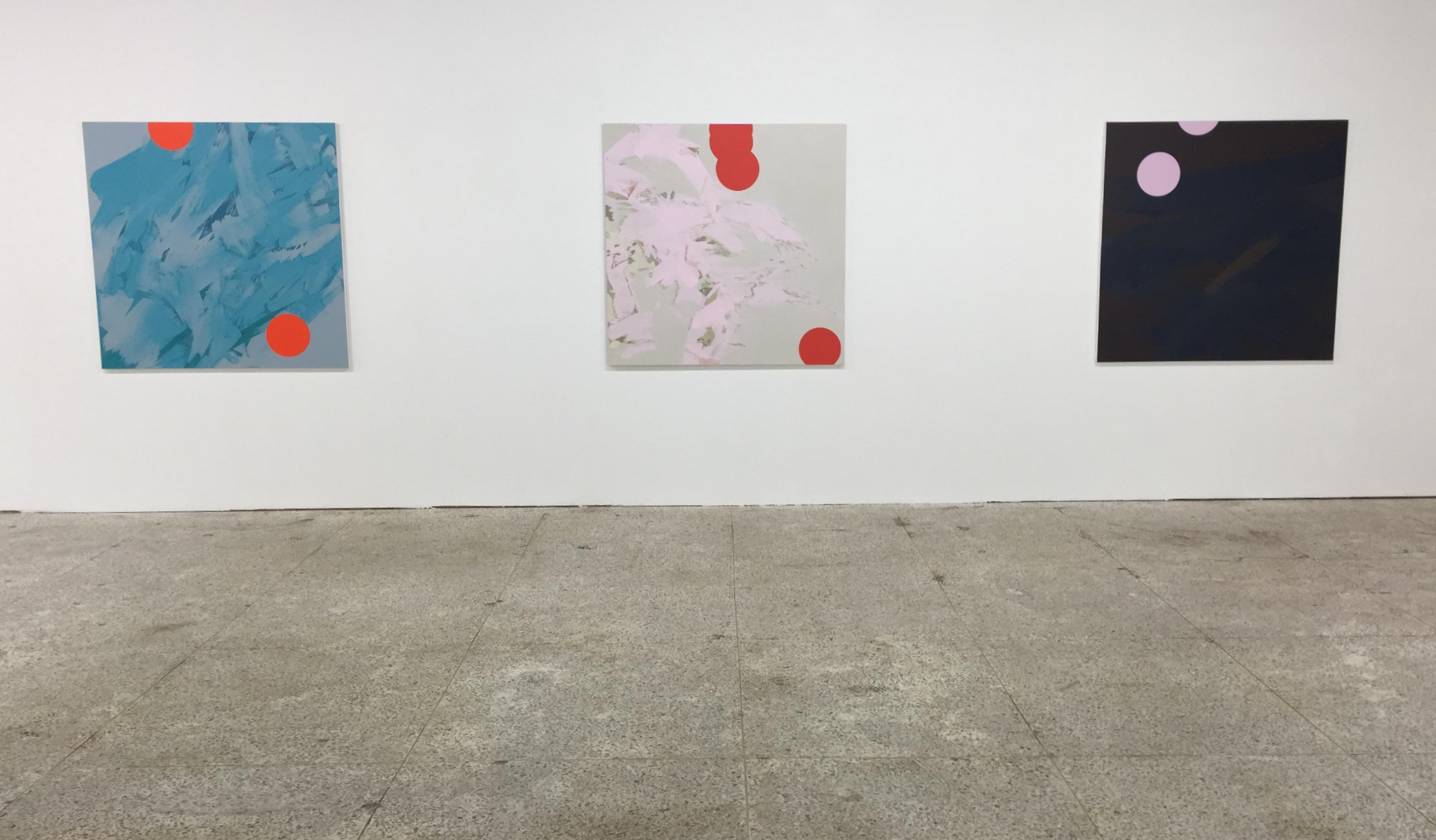 이제 우리는 무엇을 보는가? 이 색채를 가진 (혹은 그러한 이름을 가진) 캔버스들은 ‘색채’나 ‘인상’에 머무르지 않는다. 그것은 관객의 몸을 더 안쪽으로 당기며, 당김으로써 이미지가 되려 한다. 관객은 원과 직선, 격자 무늬와 같은 기하학적 모양을 발견할 뿐 아니라, 그러한 기하학적 무늬를 가로지르는 더 다양한 흔적을 마주하게 된다. 이 마주친 것, 출몰한 것은 – 다른 말로 이미지인 것은 색채나 형태와 같은 보다 형식주의적이고 중립적인 말이 아니라 흔적으로 불릴 수 있다. 이 출몰한 것은 제목이 지시하는 바를 재빨리 벗어나고 말며, 색채로도 형태로도 환원되지 않으며 그 자체로 남는다. 그러한 까닭에 관객은 더 가까이 캔버스로 다가간다. 전시장의 그림들을 멀리서 관조할 것이 아니라 보다 적극적으로 그림 가까이에 붙어서, 붓의 자국과 엉기어 드는 방향들을 찾아야 할 필요를 느끼게 된다.