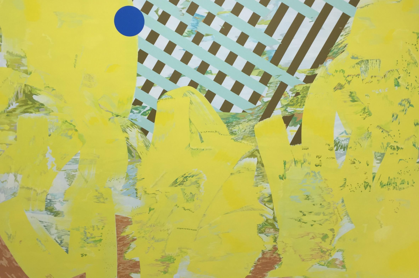 가령, 전면의 ‘노란색’이 화면을 가득 채운 <노란색>은, 해당 캔버스에서 주된 인상을 담당하는 것이 특별히 추출된 노란색인 것은 맞지만, 그 색의 앞뒤(혹은 안팎)-로 실로 다양한 색채가 보인다. 물을 더해서 묽게 된 다른 노란색, 그 위로 섞인 푸른색,녹색, 갈색, 그리고 “설명하기 어려운” 여러 색들을 볼 수 있다. 좀 더 자세히 들여다보면 캔버스를 채우는 것은 붓을 결, 붓의 시작 혹은 끝을 따라서 채워진 다양한 색채, 세세한 길, 의도된 것으로도 보이는 다종 다양한 흔적들이다.