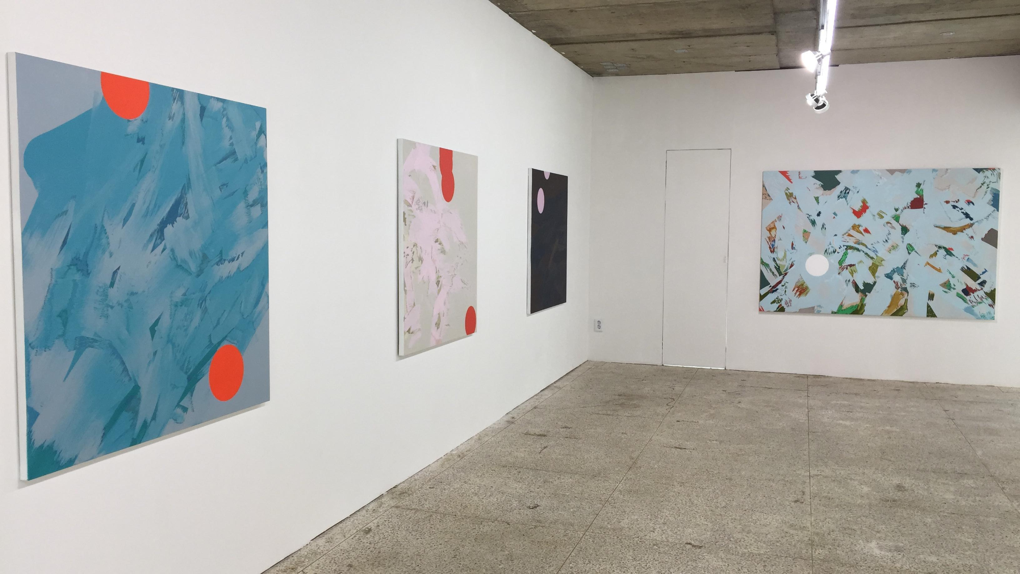 지금 이 전시장에 자리한 당신의 경우를 생각해보자. 전시장에 막 들어선 관객은 전면에 율동감을 갖는 색채의 일렁임을 볼 것이다. 채도 높은 원을 따라 그 일렁임을 더 생동감 있게 느낄 즈음, 임자혁의 개인전 《그러는 동안에》를 조직하는 인상이 자리잡기 시작할 것이다. 전시장의 그림들은 특정한 형태를 가진 재현된 상이기 보다는, 색채이고 동그란 원이며, ‘색채’를 이름으로 갖는 캔버스이다. 시선은 짧은 순간 나름의 순서를 가지고 색채 위를 돌아다닐 것이다. <매우 연한 분홍>에서 <청록보다 조금 파란>으로, <설명하기 어려운 연두>에서 다시 <청록보다 조금 파란>, <매우 연한 분홍>, 그리고 <짙은 갈색>으로. 그리고 일순간 <설명하기 어려운 연두>는 <흰색을 조금 섞은 녹색>에서 <노란색>으로, <매우 연한 하늘색>으로 <연한 회색>과 <흰색을 조금 섞은 갈색>에서 <짙은 남색>으로.