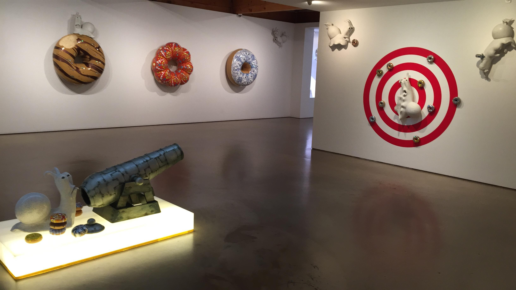 <도넛 매드니스!!>는 작가로서 벼랑 끝에 몰린 상황에서 만들어낸 작품이다. 현실의 벽에 부딪혀 작가로서의 삶을 포기하려던 차에 평소 좋아하던 도넛을 흙으로 빚어 벽에 걸었다. 관객은 도넛 조각을 보며 다양한 욕망의 형태를 떠올린다. 수많은 도넛 속에서 자신이 보고 싶은 것을 찾아낸다.